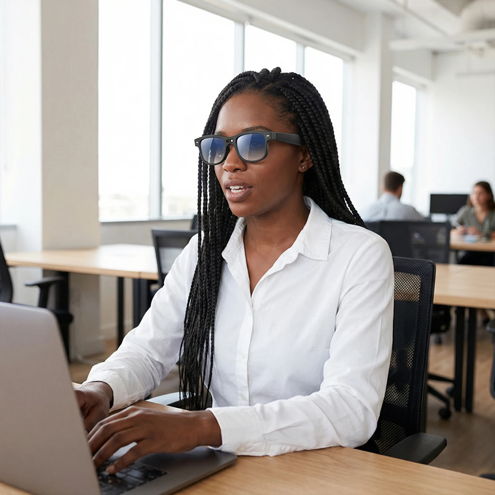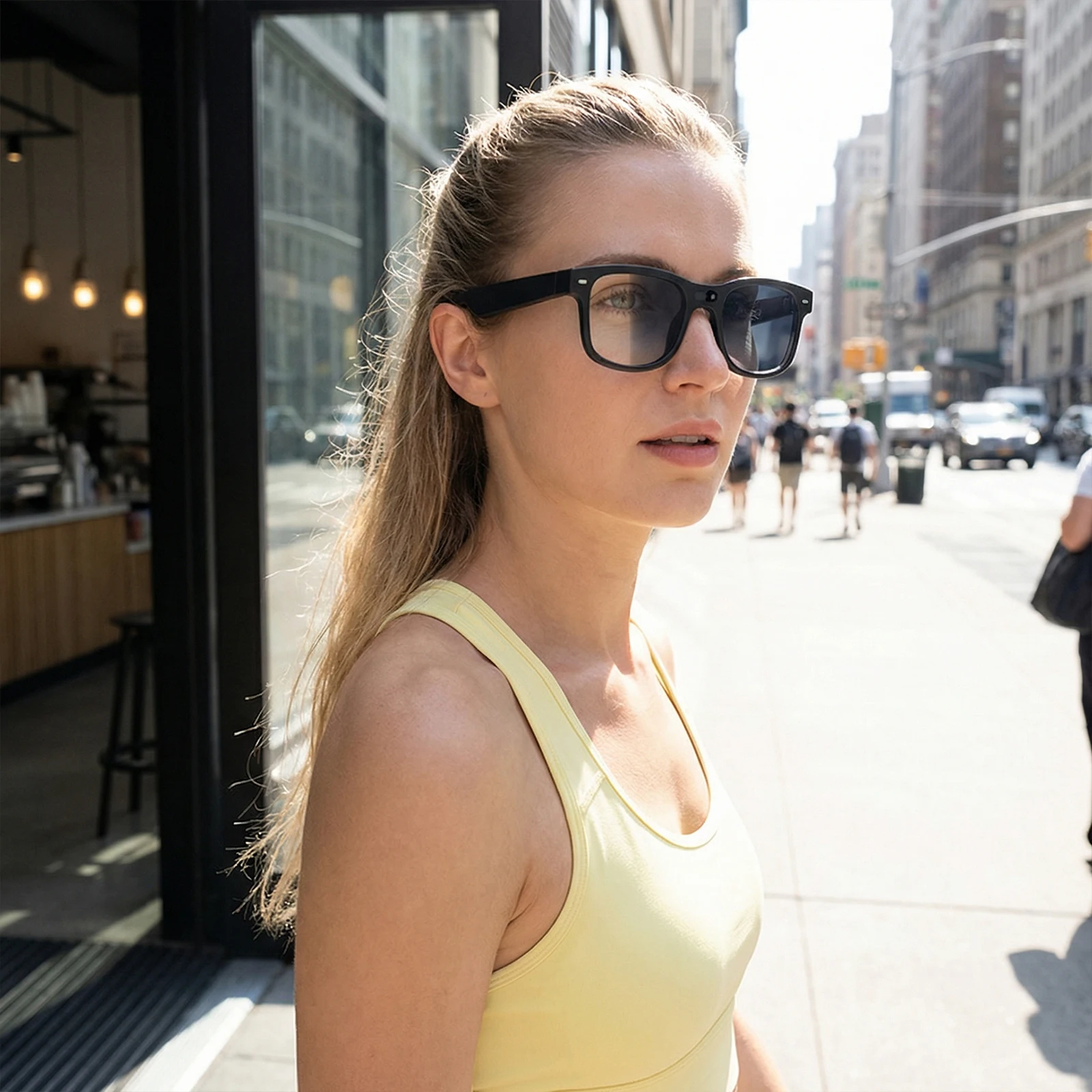 Features: 1.Real-time Translation: These smart glasses support over 160 languages with instant translation during conversations, ensuring seamless communication worldwide. Experience rapid and accurate language translation wherever your travels take you. 2.Outdoor Adaptive Lenses: Outfitted with transformable lenses, these audio bt camera glasses automatically adjust to sunlight for enhanced visibility and maximum eye protection, letting you enjoy the outdoors without worry. 3.Hands-Free Controls: Effortlessly manage your device with simple button touch adjustment or voice assistant access. Enjoy true hands-free recording glasses functionality for convenience and ease of use. 4.High-Definition Imaging: Featuring an integrated 8mp hd camera glasses, these AI smart glasses capture brilliant 2K ultra-clear images and videos, complemented by electronic image stabilization and 16G internal memory for smooth storage. 5.Lightweight All-Day Comfort: Designed for everyday wear, these video recording glasses are feather-light and come with three pairs of adaptive lenses, a charging cable, and a quick-start guide for easy setup and effortless adventure. Specification: