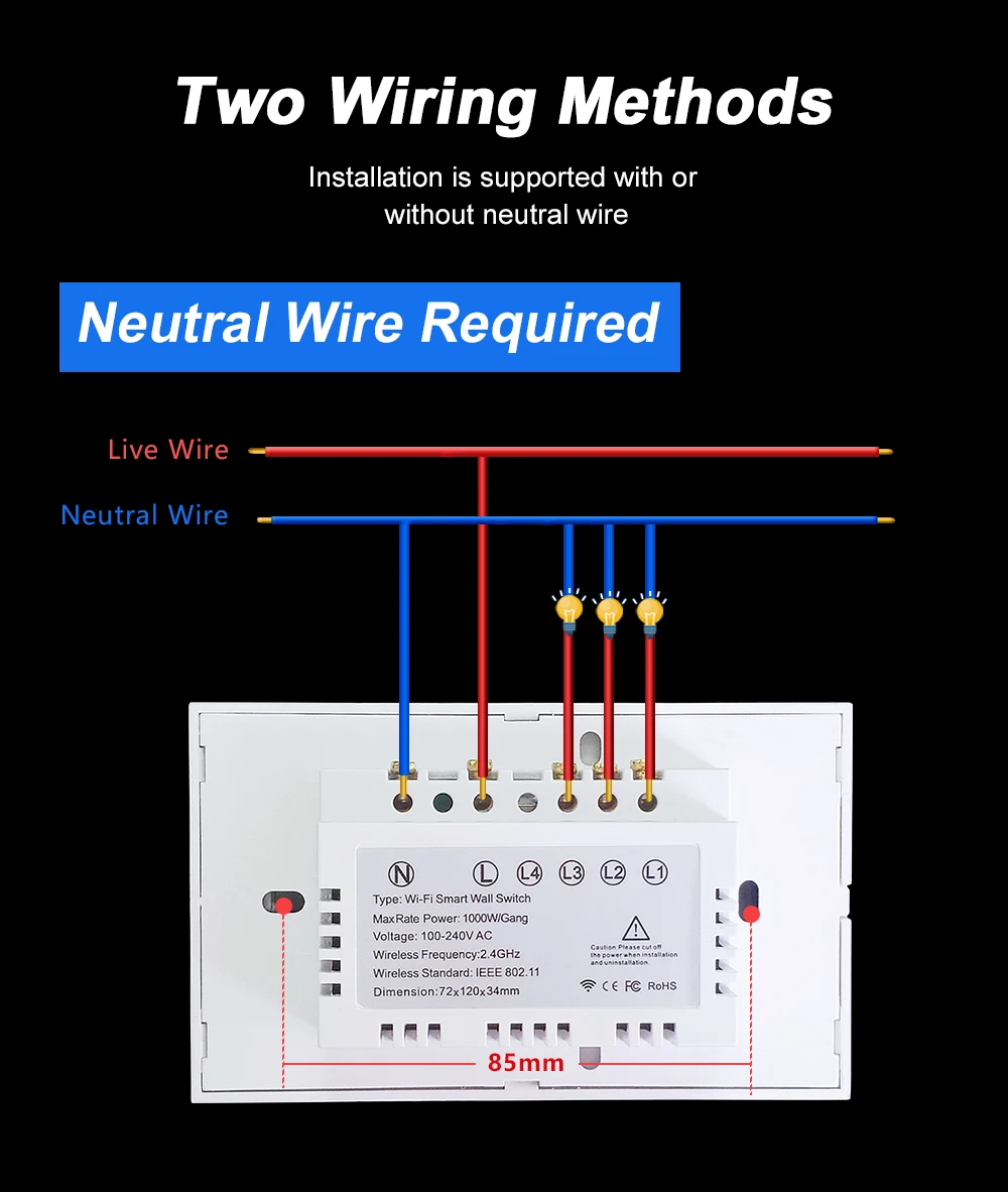 Compatible with both methods No Neutral Wire Required and Neutral Wire,Suitable for all most countries.