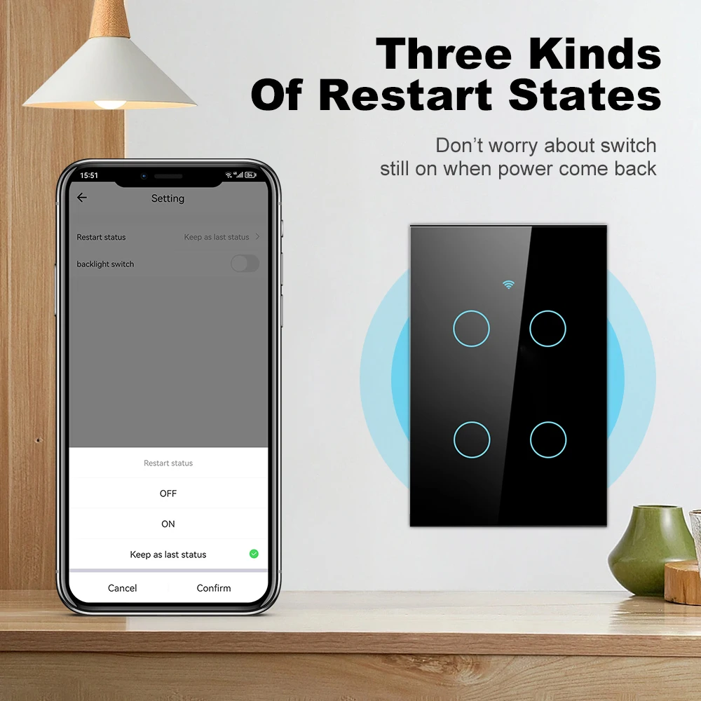 The smart wifi Switch is perfect compatible with Amazon Alexa, Google Home. Just simply give a voice command to your Alexa or Google Home Assistant to control your devices when you are on go.