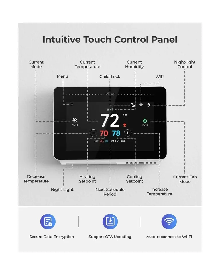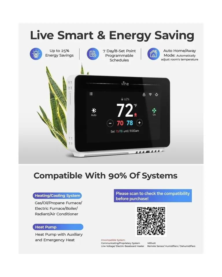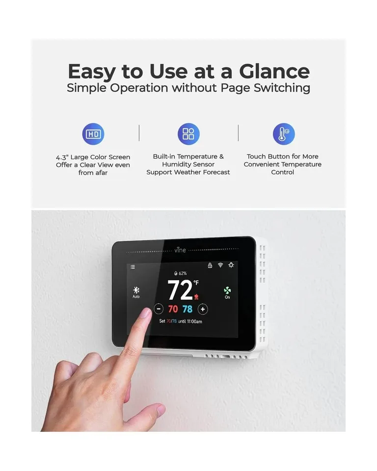 Smart Wi-fi Thermostat. Works With Google And Alexa By Vine TJ- 919T Details-Refurbished