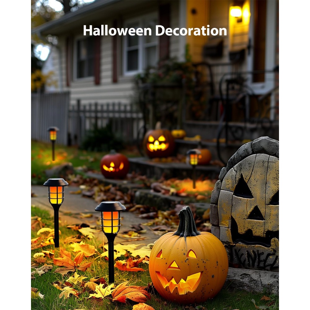 - 【FLICKERING FLAME EFFECT】These outdoor solar lights have flickering flame effect, emitted by SMD LEDs, which can simulate a dynamic effect similar to real flames. As a yard decoration, it makes your pool, patio, porch, backyard, and paths more charming. Also,it can serve as an ambiance enhancer for outdoor activities, making your gatherings, barbecues, camping or parties more enjoyable.