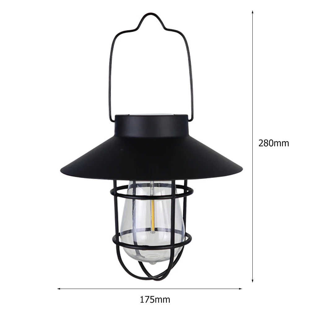 Solar Retro Camping Lantern Waterproof Vintage Night Lighting Portable Outdoor Hanging Tent LED Chandelier Light for Emergency Hiking Garden Yard Decor