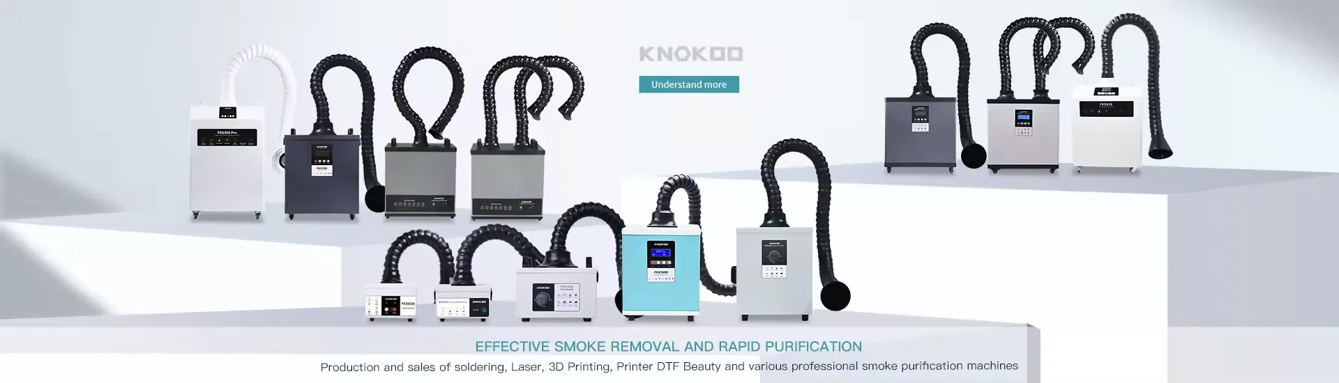 KNOKOO used DC motor, less power consumption, lowe noise, smoke filtered and discharged into the air, in line with the requirements of environmental impact assessment.The power is 87.5% larger than the 80W machine on the market, the suction power is greater, the noise is not increased, and the smoke absorption and purification effect is more better.
