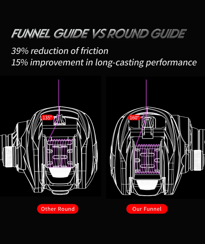 2.Compact Design-HICC-50 has been designed and debugged for one year, a more compact design can extended product service life,Gear meshing and transmission are smoother and won’t make noise, Smaller gap means it won’t stuck fishing line,Overall it’s a baitcasting reel that can fulfill all your demands,and comfortable even after thousands of casts during a day of fishing.