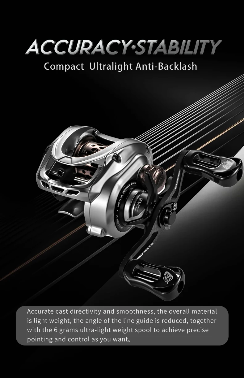 1.Excellent Durability&Ultralight Weight- Acura HICC-50 Pro’s name comes from Accuracy .Carbon frame with Germany imported aluminum main gear, not easy to rust ,we ensure excellent durability one hand,and try hard to reduce the reel weight to 136g with 5.4 g shallow spool and 7g standard spool ,endue angler with an extreme comfortable casting feeling. The HICC-50 baitcasting reel’size is small ,your can hold it easily, Carrying it in your fishing journey,which never be your burden