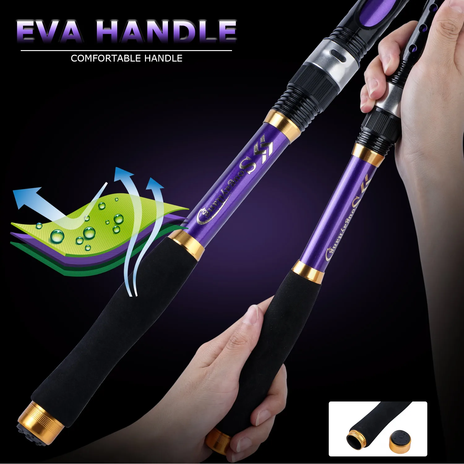 Comfortable EVA handle. Sweat-absorbent and radial design, greatly enhance the comfort when fighting a fish and not tired for a long time fishing.