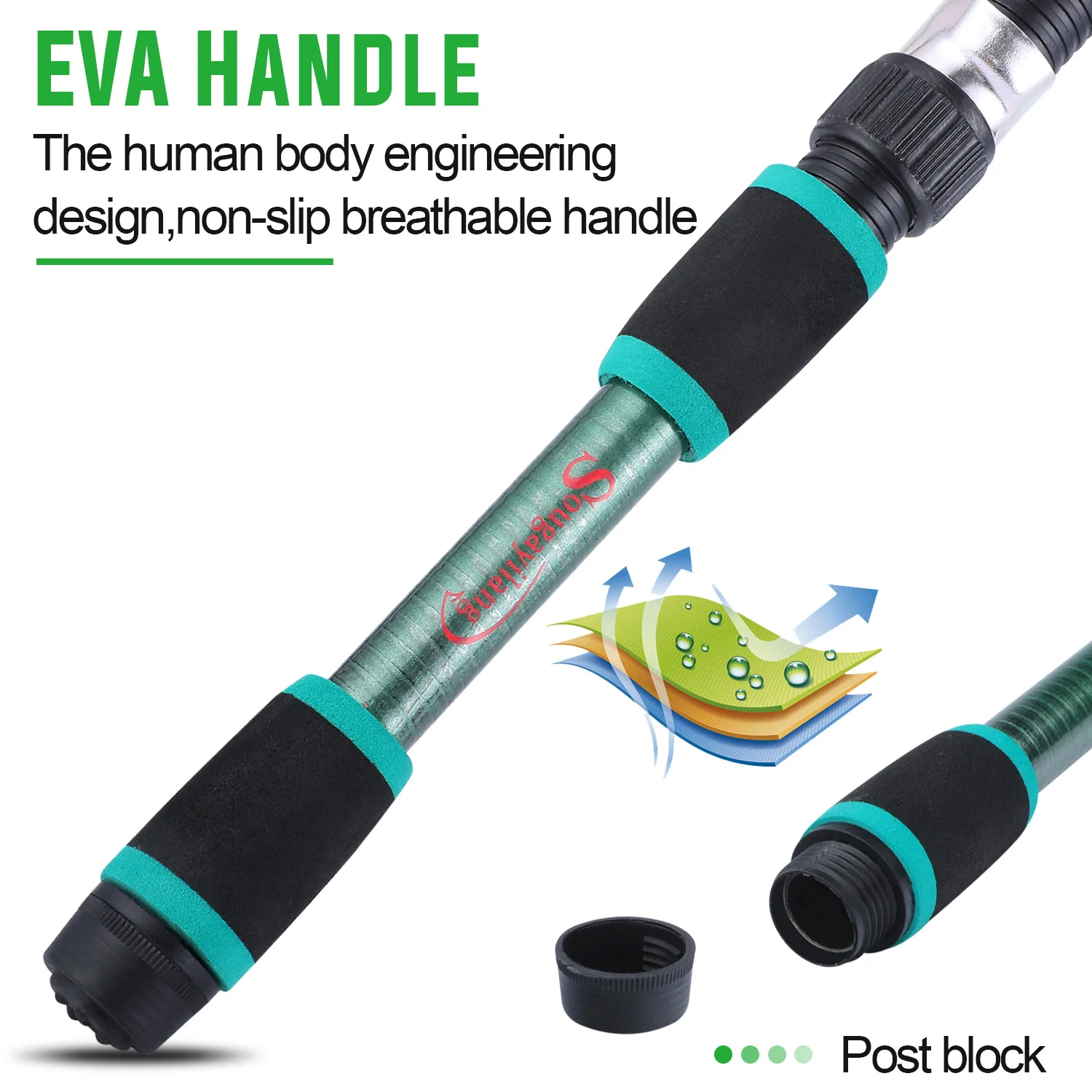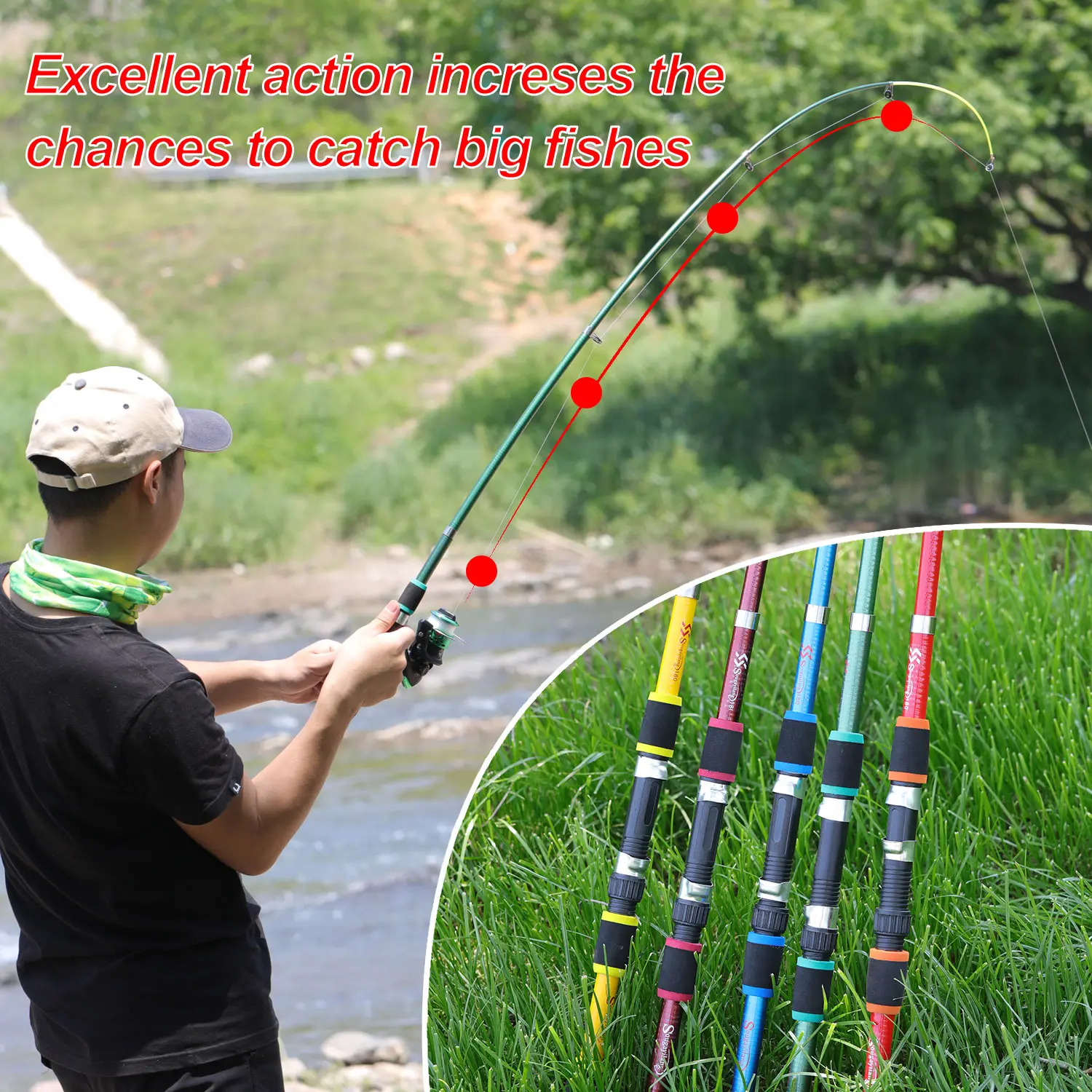 • Fishing rod is made of glass fiber, which makes the fishing rod hard and light, with good flexibility and fishing power.