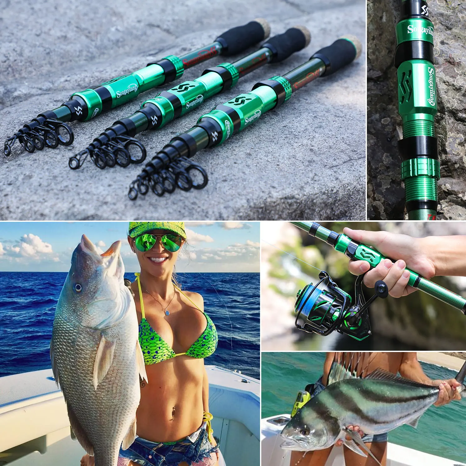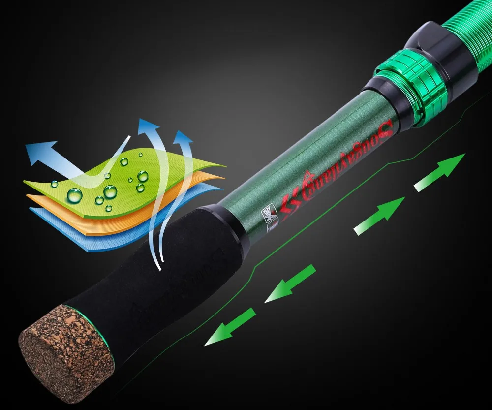 1. This fishing rod is made from carbon fiber, strong and durable.