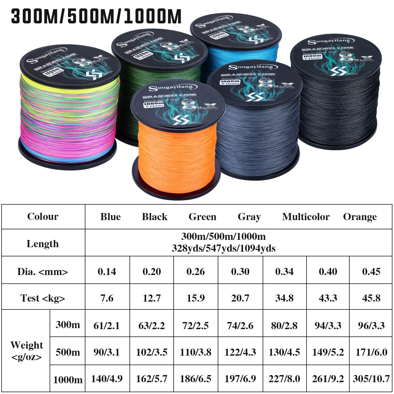 Sougayilang 300M 500M 1000M 6 Colors Strong PE Fishing Line 8+X Strands Braided Fishing Line Multifilament Durable Fishing Line