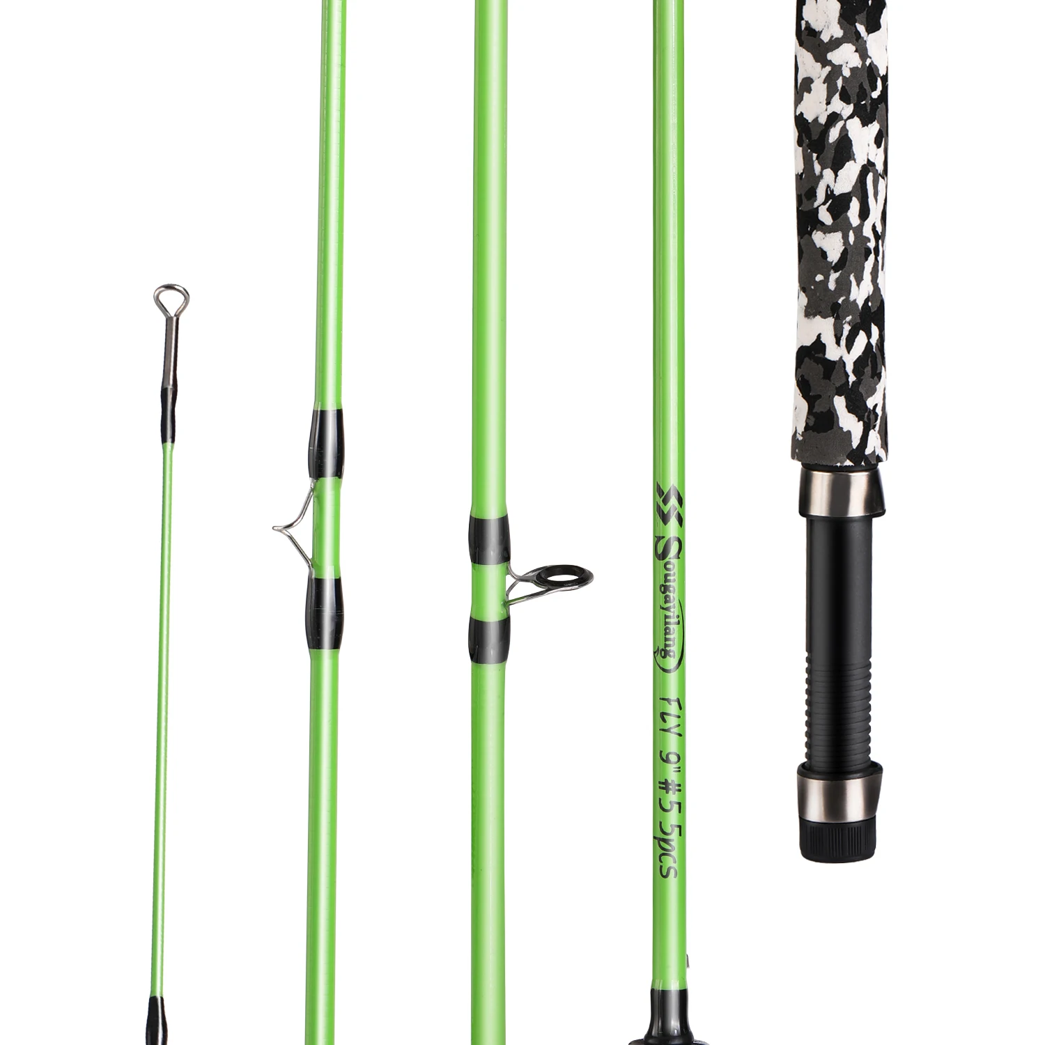 1. 5-section super smooth graphite fly rod, breaks down for easy storage and traveling