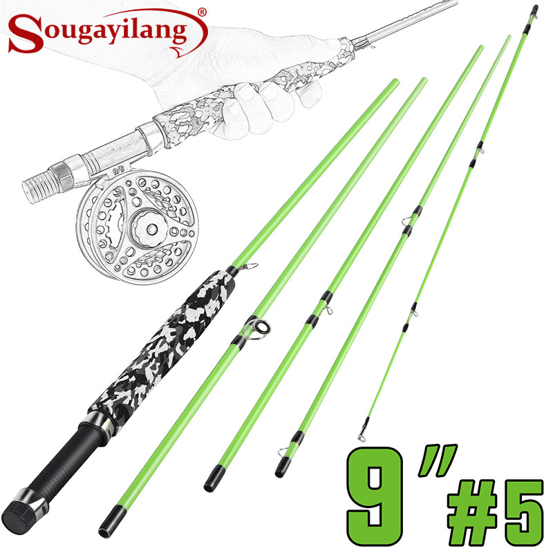 Sougayilang 9″#5 Fly Fishing Rod 5 Sections Carbon Fiber Ultralight Fly Rod Medium Fast Action Pole for Stream Leisure Fishing