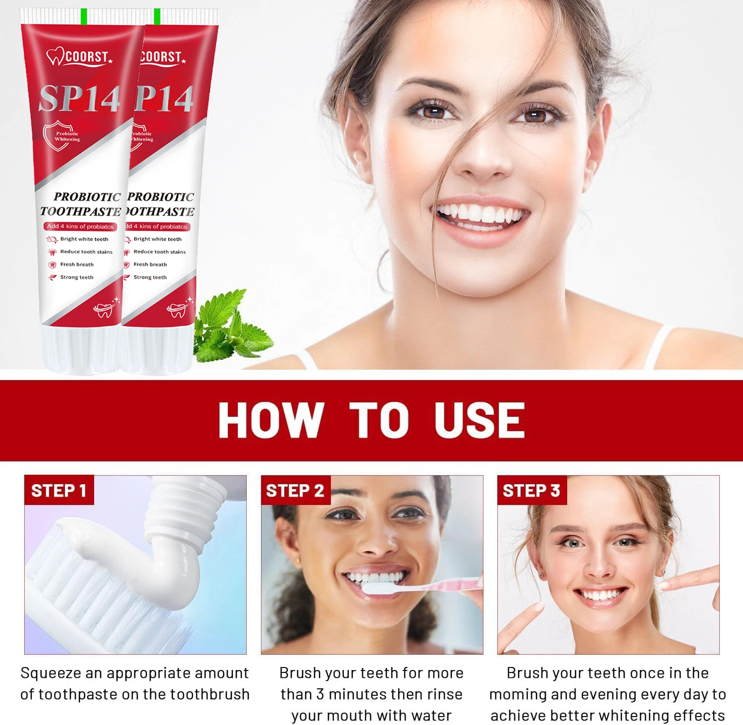 *Easy to Use: Use the best Super Probiotic 14 Toothpaste Whitening twice a day for 3 minutes each time. You can easily feel the visible improvement in the whiteness of your teeth, and continue to use it for better results. It’s that simple
