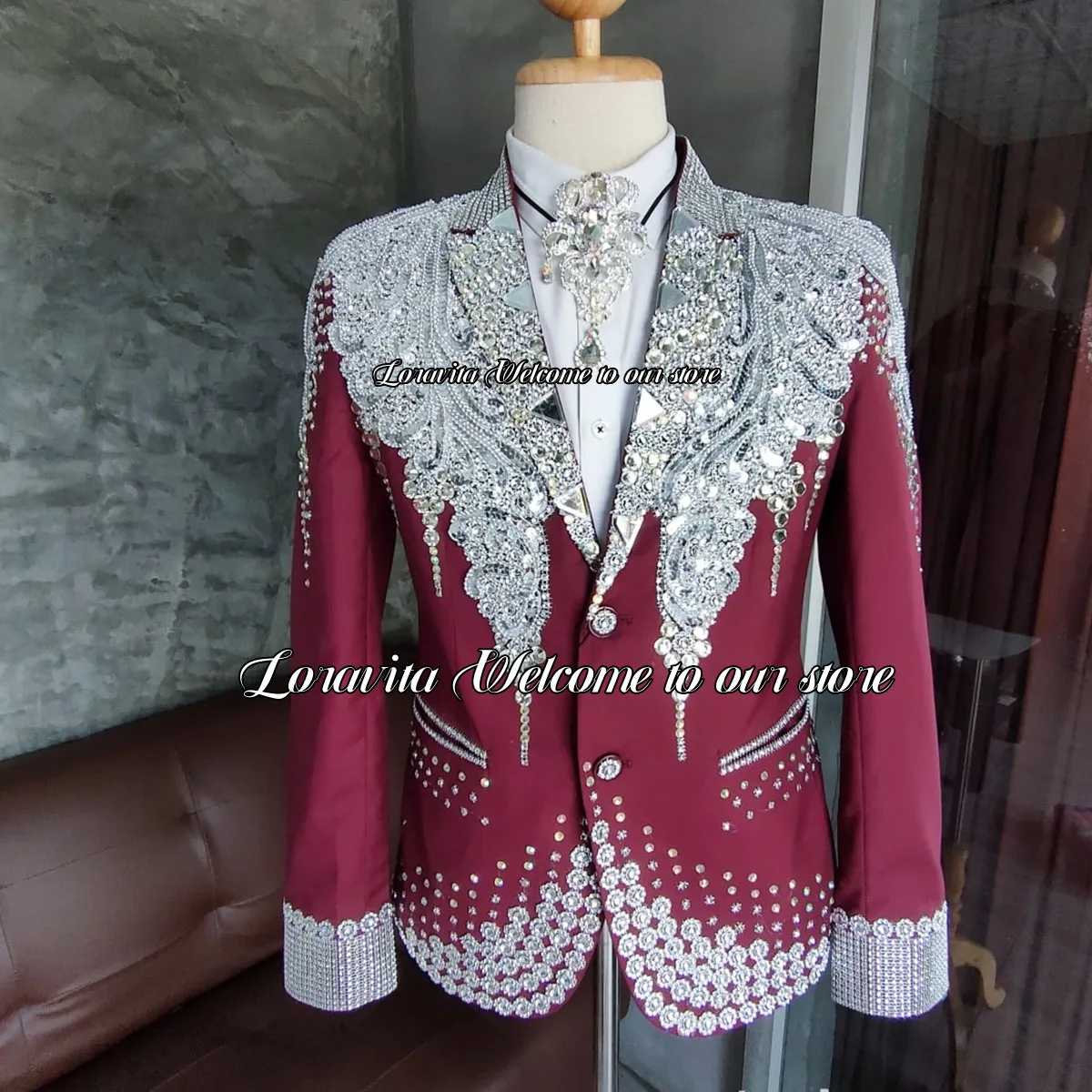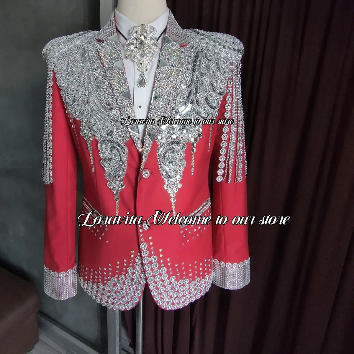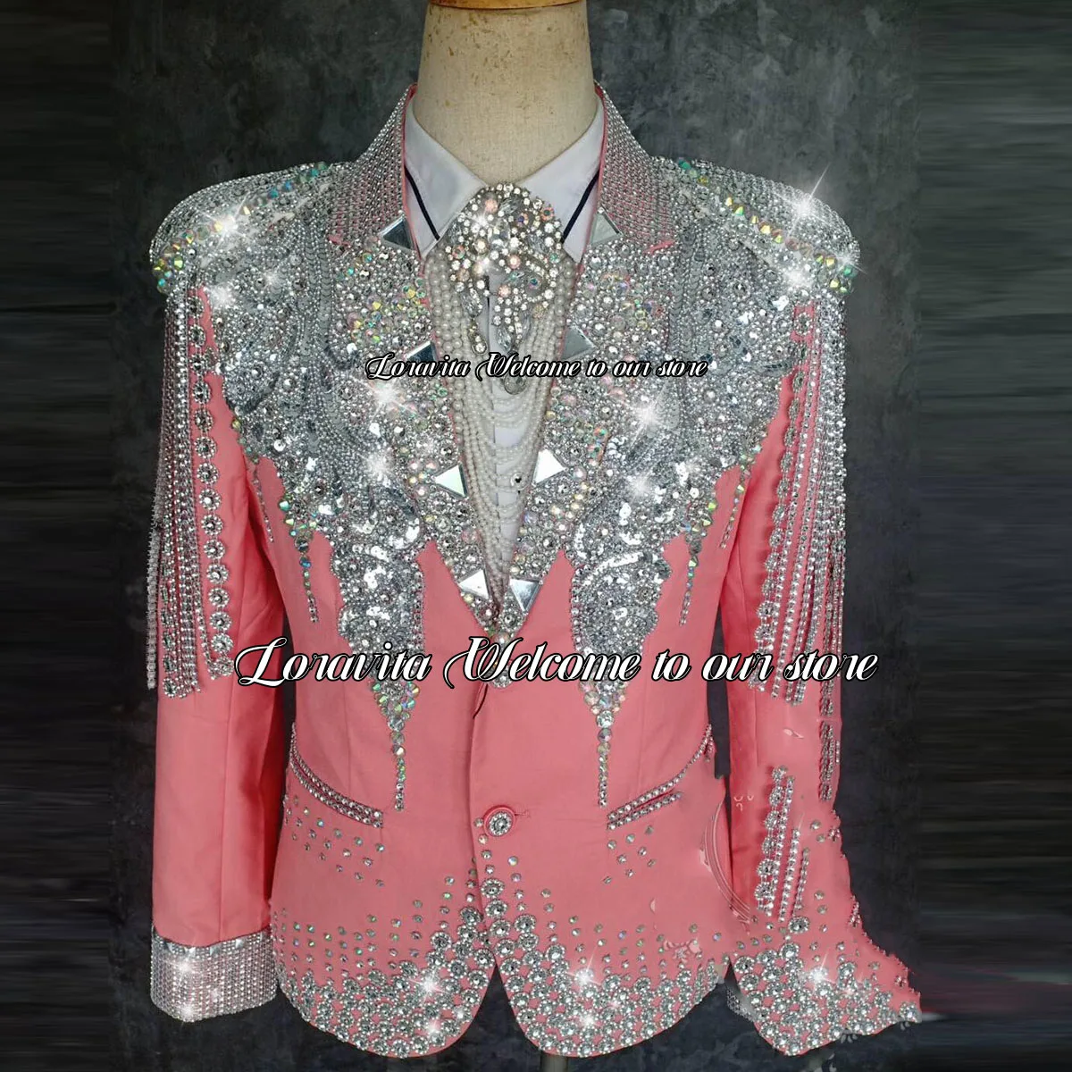 Sparkle Gem Crystals Groom Tuxedos Slim Fit Costume Homme Luxury Male Prom Party Blazers 2 Pieces Sets Men Suits For Wedding