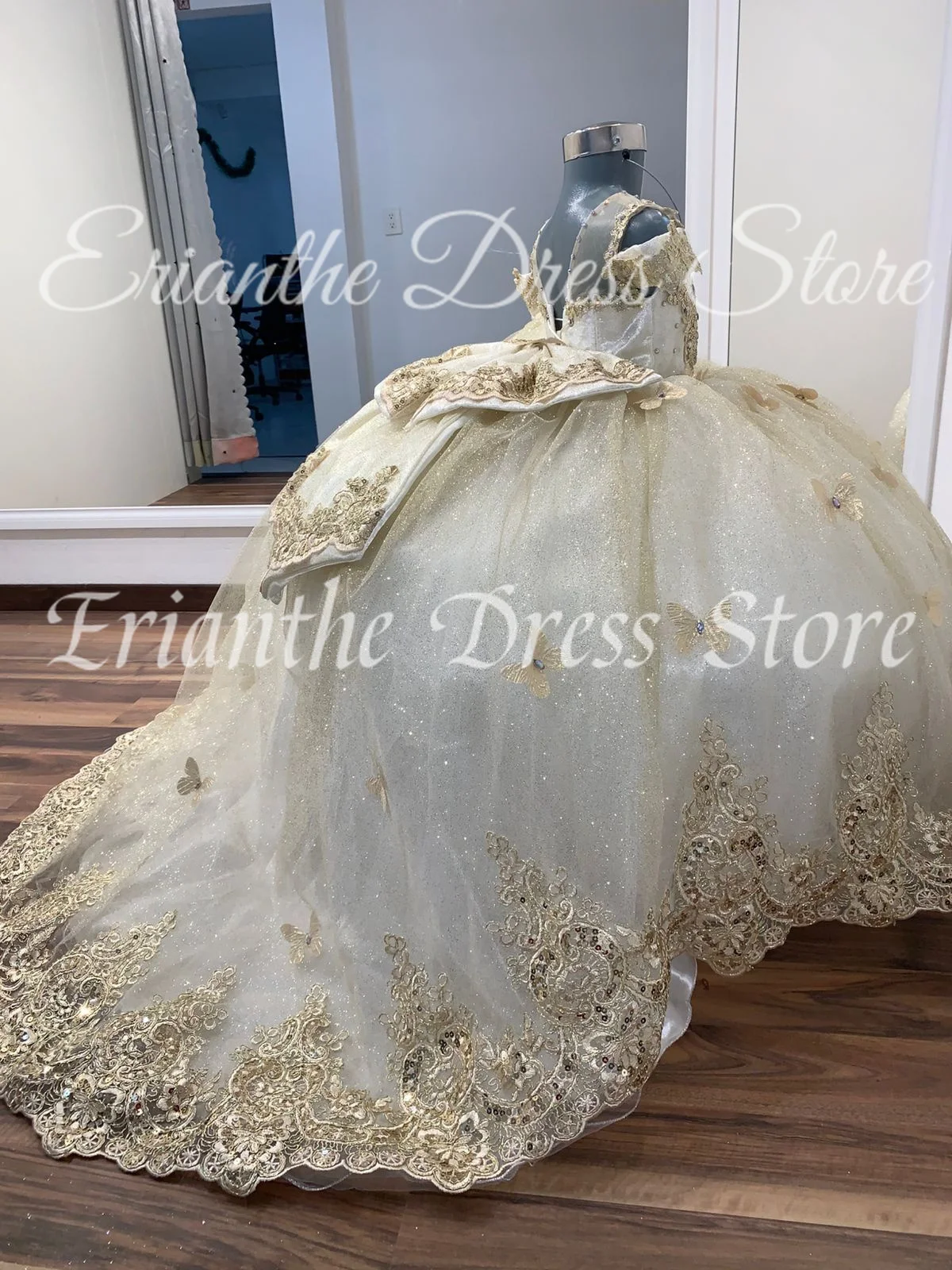 Sparkling 3D Flower Girl Dress For Wedding Lace Applique Tulle Puffy Kids Birthday Party First Communion Ball Gowns Customized