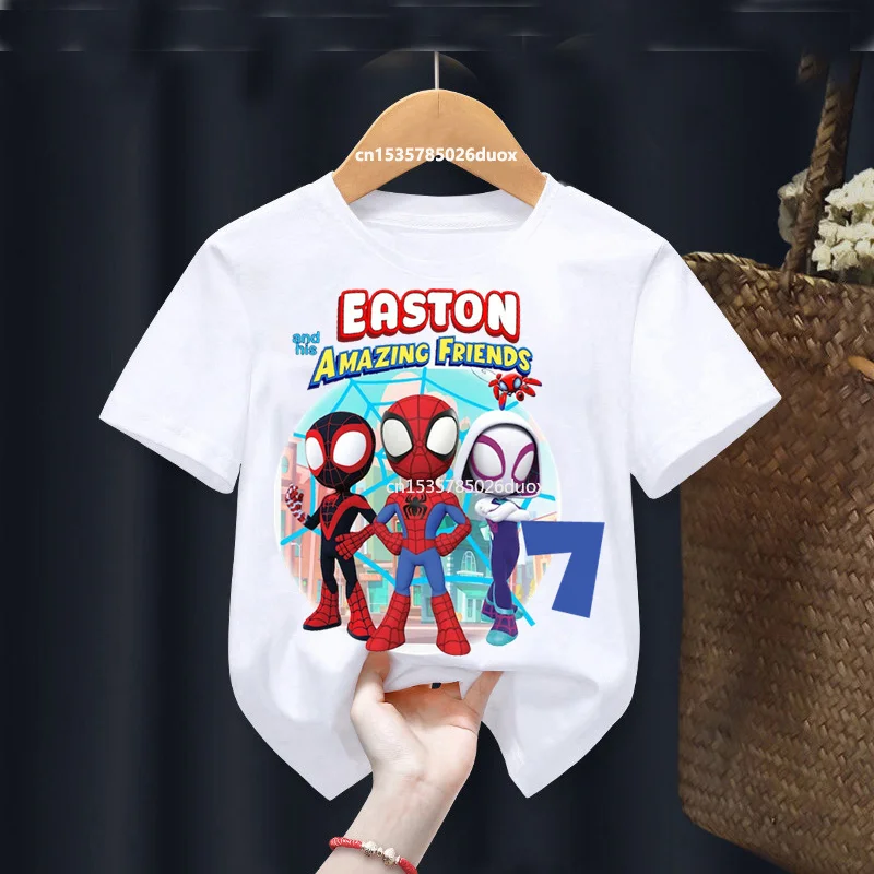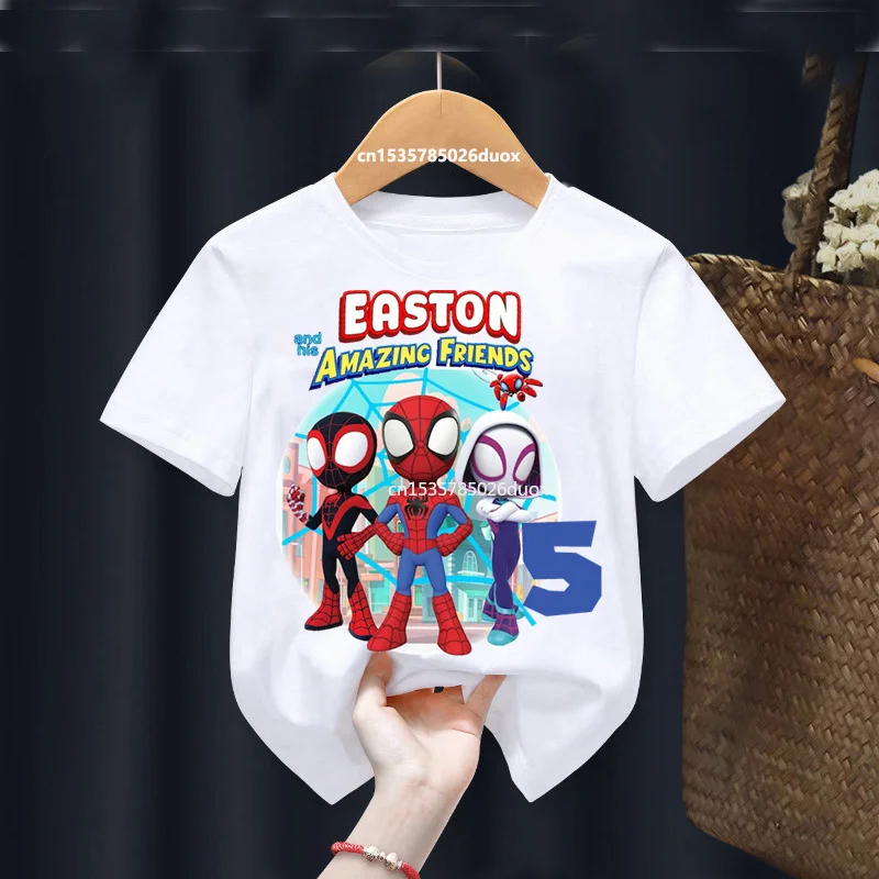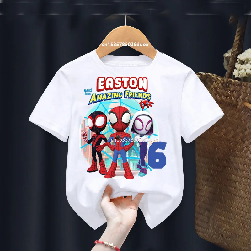 Spidey And His Amazing Friends Birthday Party Birthday Summer Short Sleeve Shirt Spiderman Personalize Name Birthday Boy T-shirt