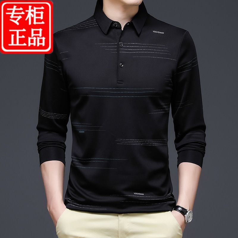 Spring and Autumn 2024 Men’s New Patchwork Pullover Collar Button Fashion Print Casual Slim Fit Long Sleeved T-shirt POLO Shirt