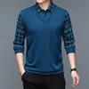 Spring New Long Sleeve POLO Men’s T-shirt Turn-down Collar Loose Solid Plaid Fashion Casual Business Button Tops
