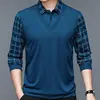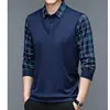 Spring New Long Sleeve POLO Men’s T-shirt Turn-down Collar Loose Solid Plaid Fashion Casual Business Button Tops