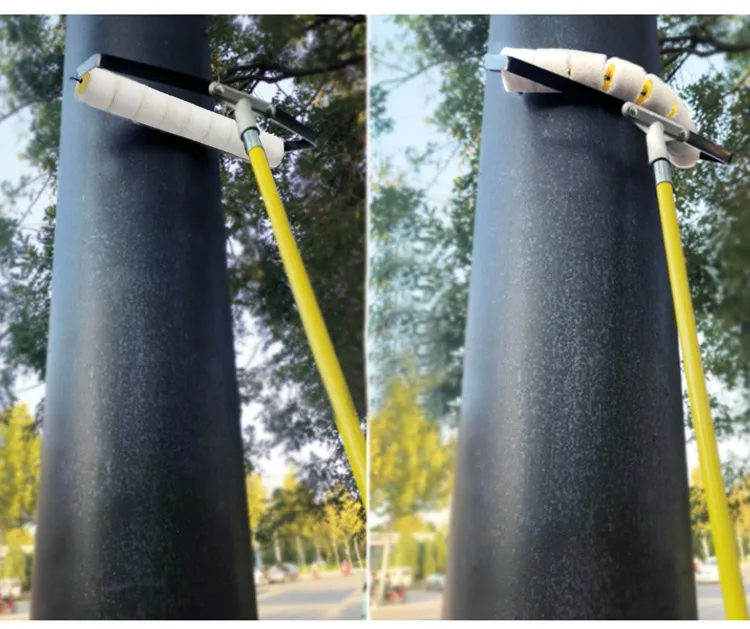 🔴 Street light poles, telephone poles, and wind power poles are usually thin at the top and thick at the bottom. Common roller brushes and curved brushes have obvious limitations. This new type of spring pipe brush can automatically adjust the arc when brushing, brushing to the end.