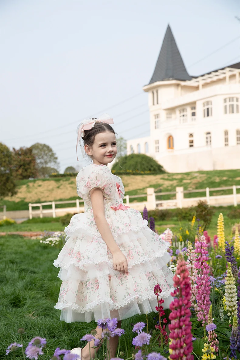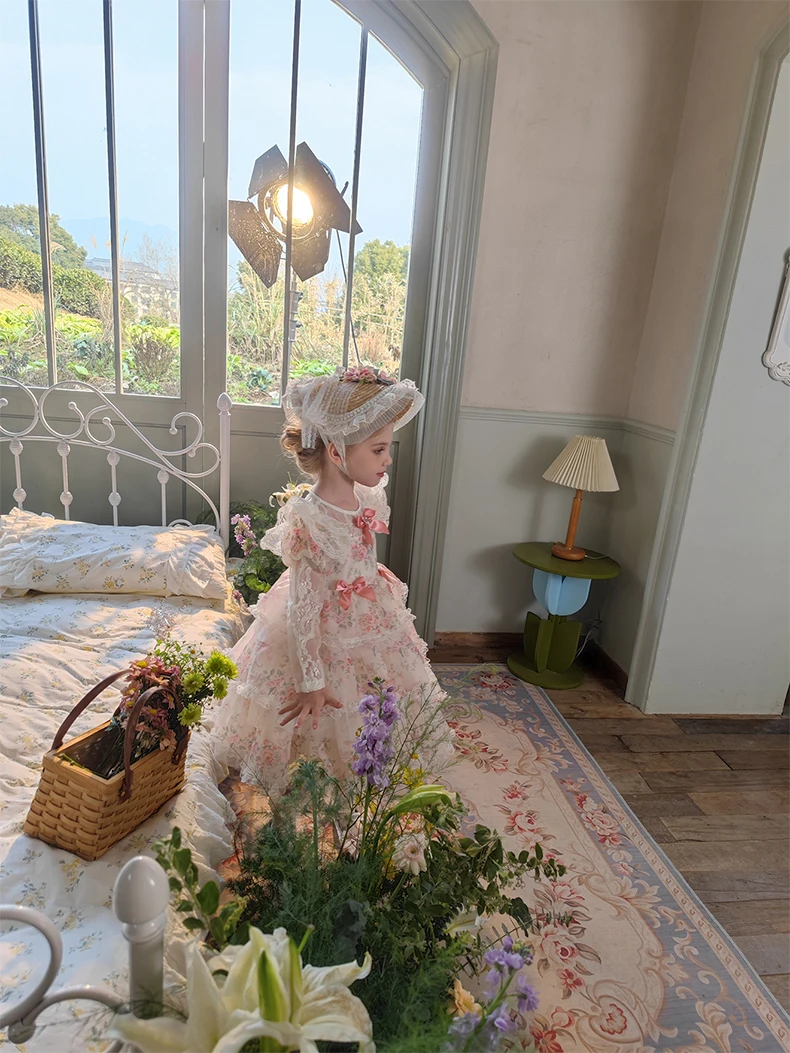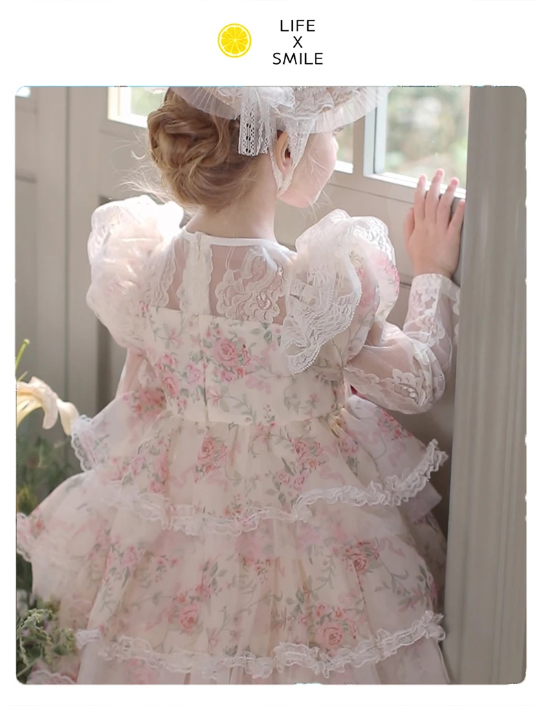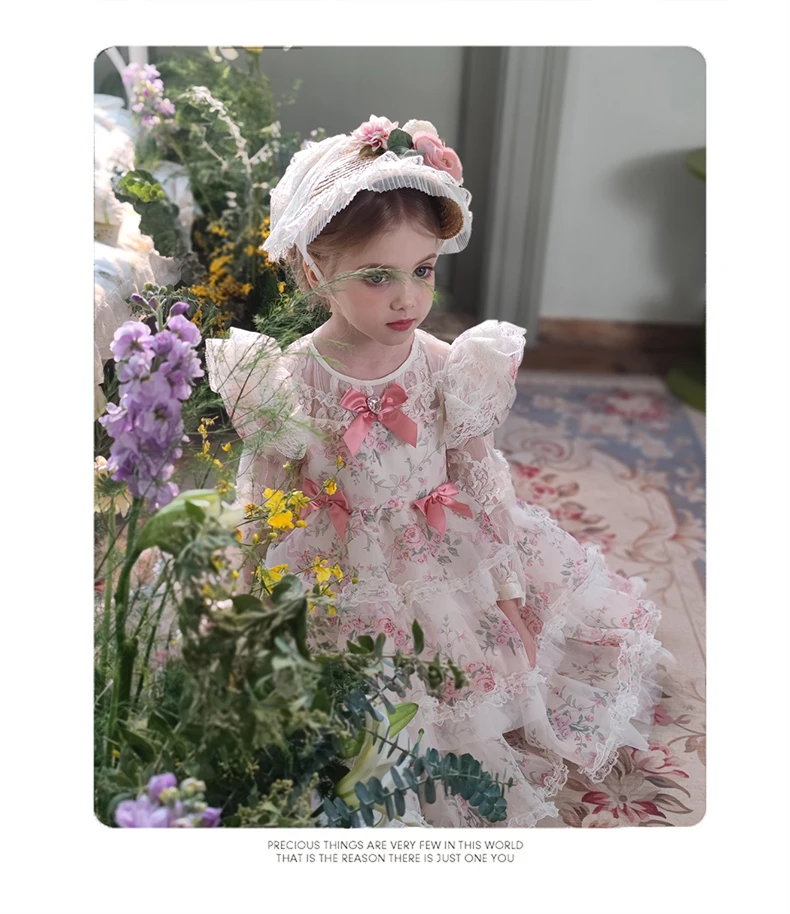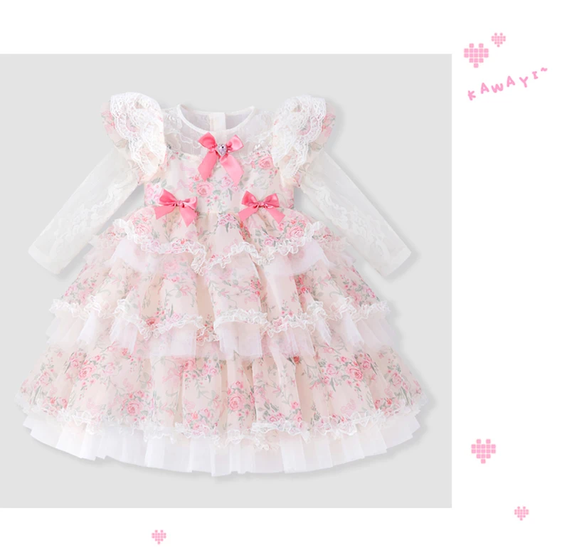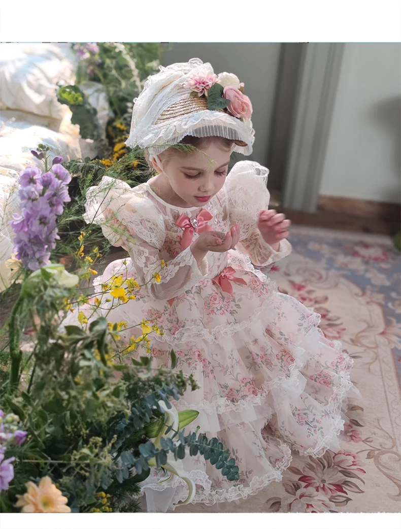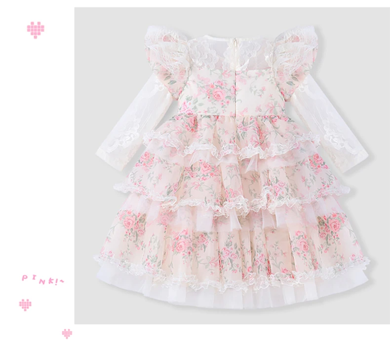 Spring Pink Girls Floral Dress Girls Birthday Princess Dress Lolita Girl Make Up Children’s Party Wedding Photography Clothes
