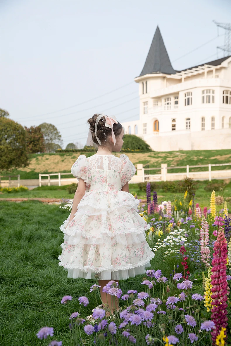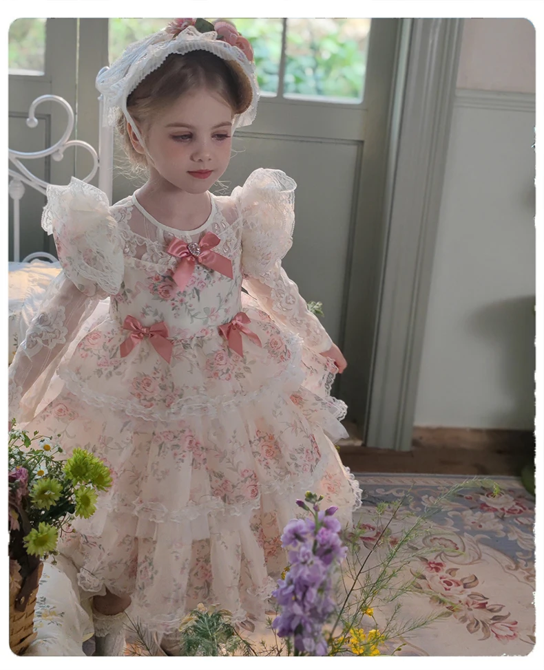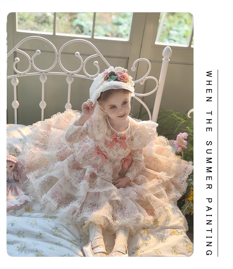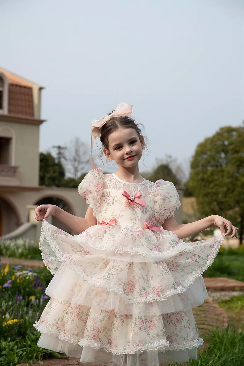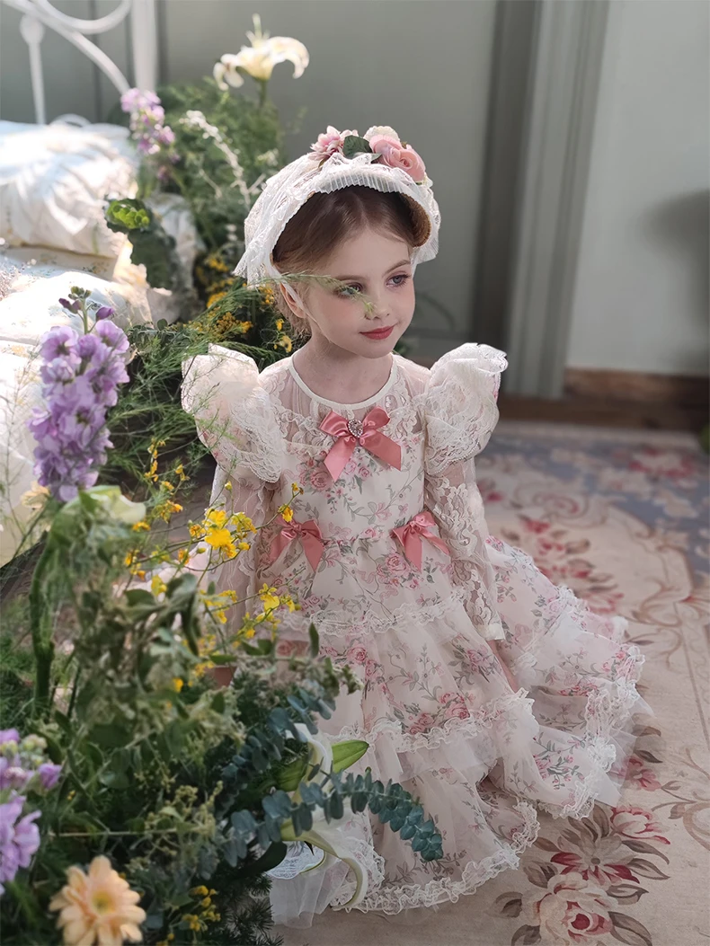 Spring Pink Girls Floral Dress Girls Birthday Princess Dress Lolita Girl Make Up Children’s Party Wedding Photography Clothes