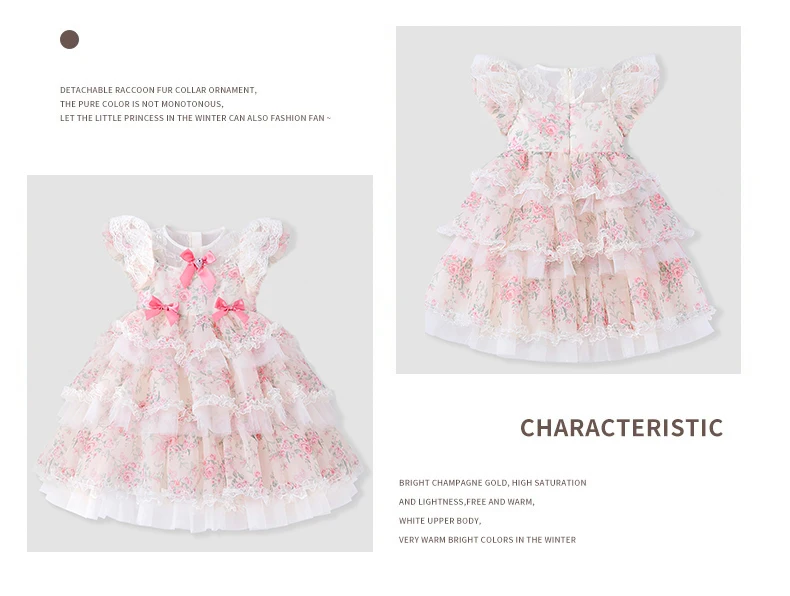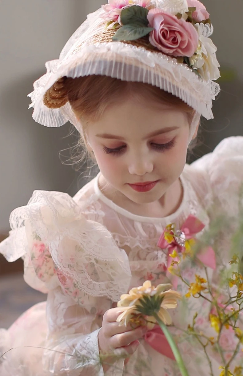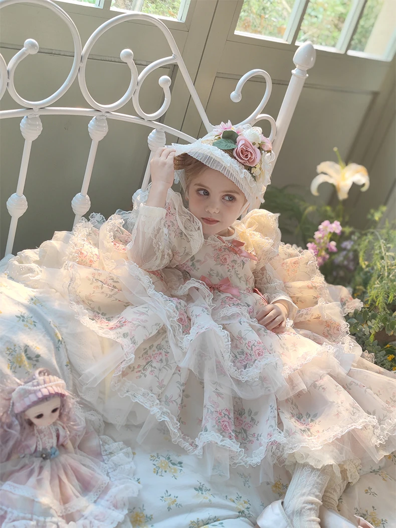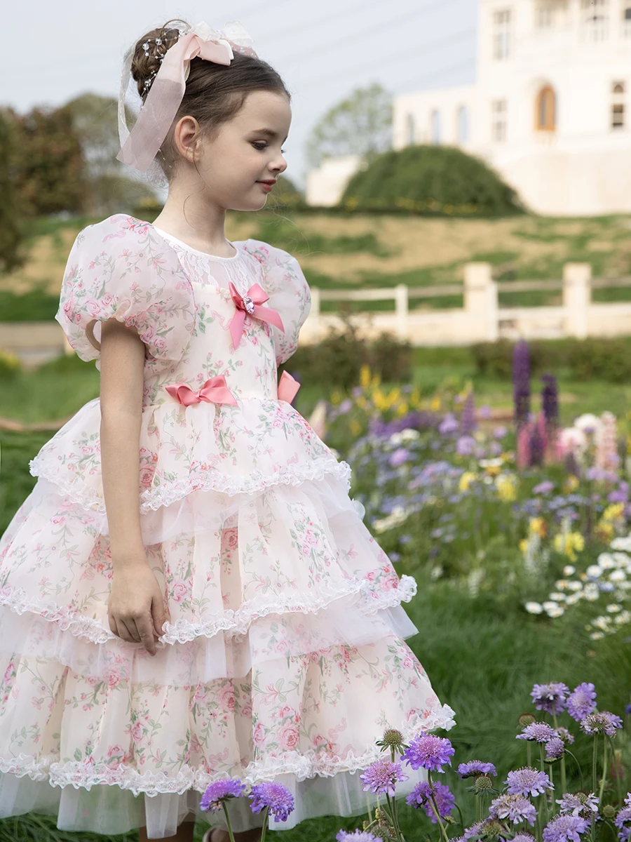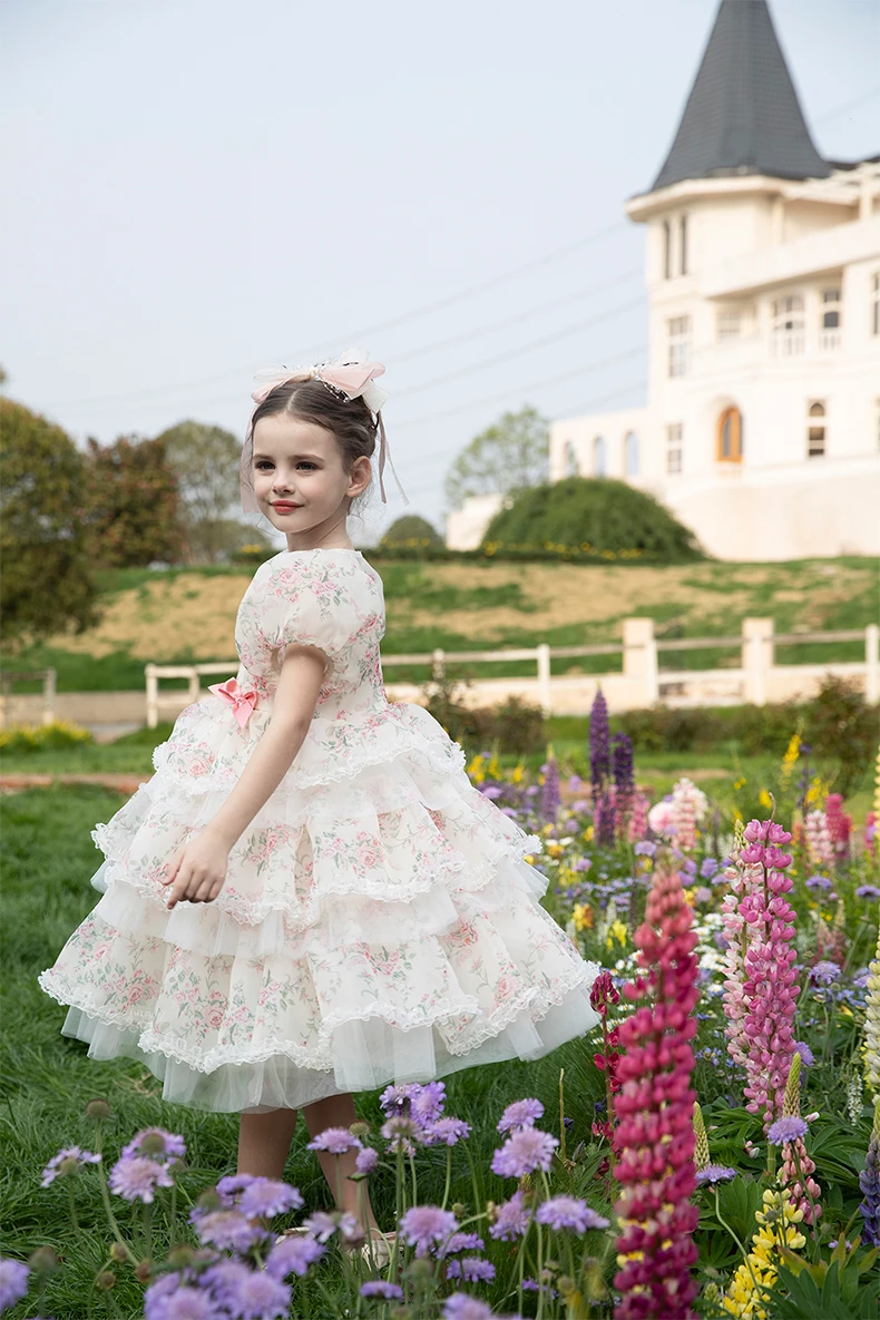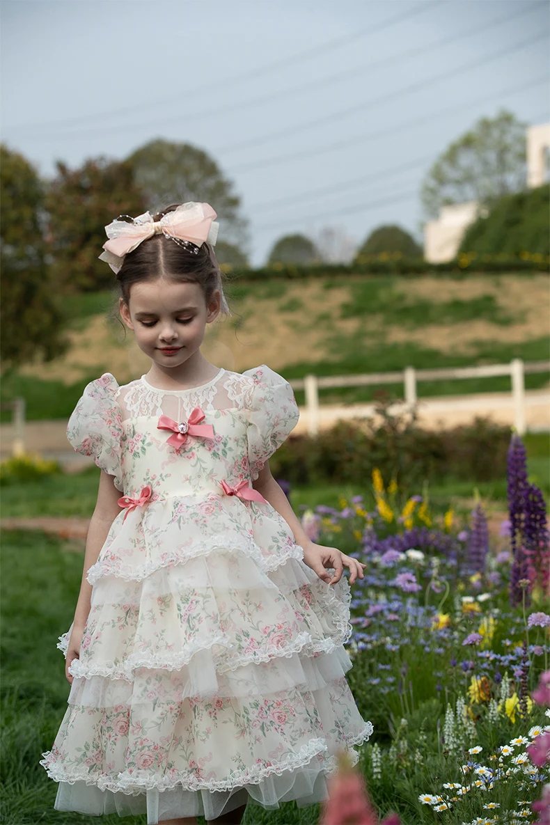 Spring Pink Girls Floral Dress Girls Birthday Princess Dress Lolita Girl Make Up Children’s Party Wedding Photography Clothes