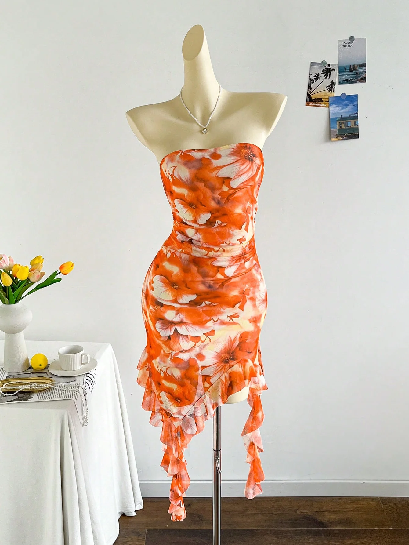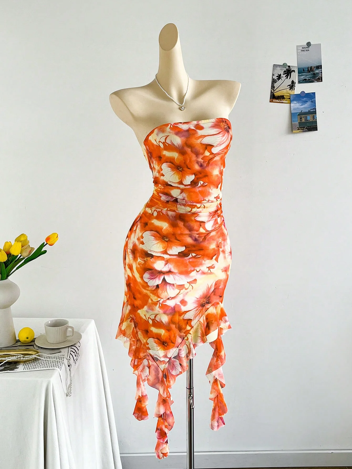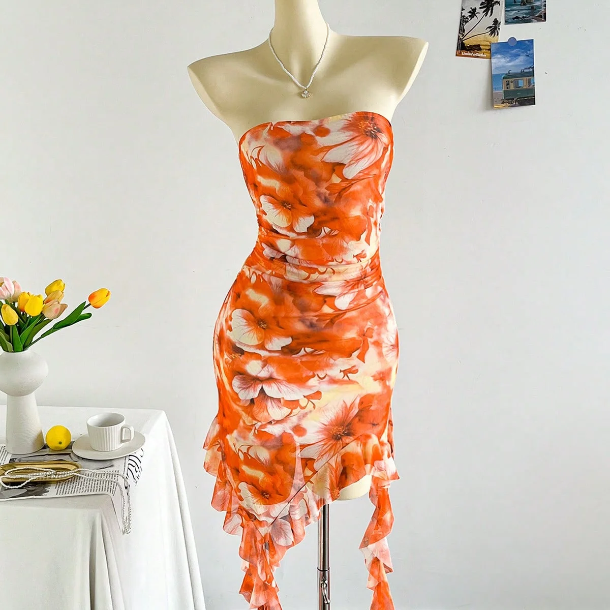 Spring/Summer Sexy Strapless Backless Hemline Irregular Mini Dress for Ladies New Fashionable Women’s Clothing
