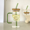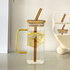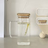 1. Drinking cup is made of high borosilicate glass, with wood lid and glass straw, Reusable and easy to clean.