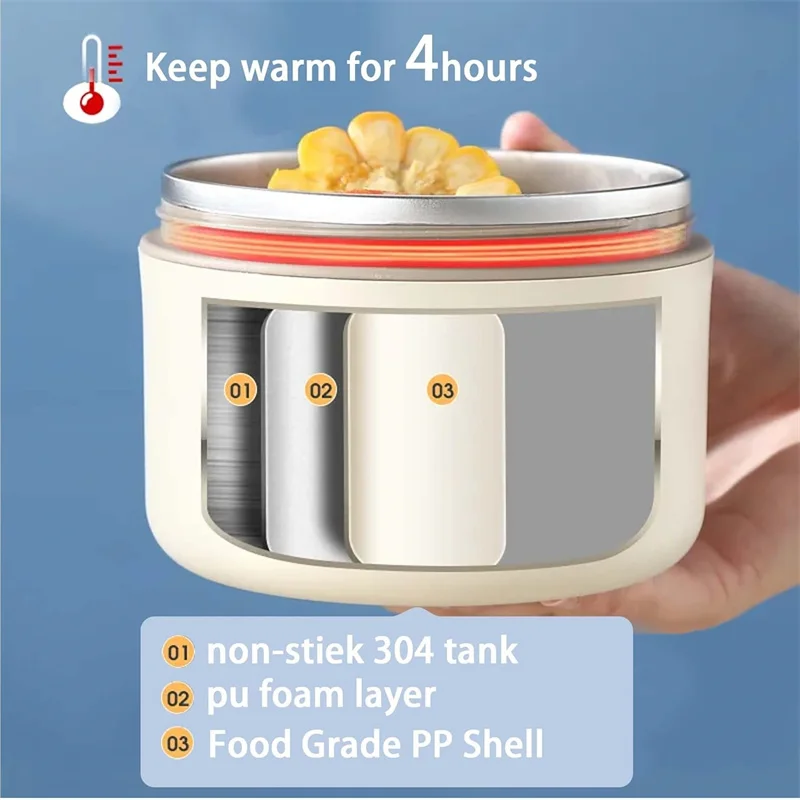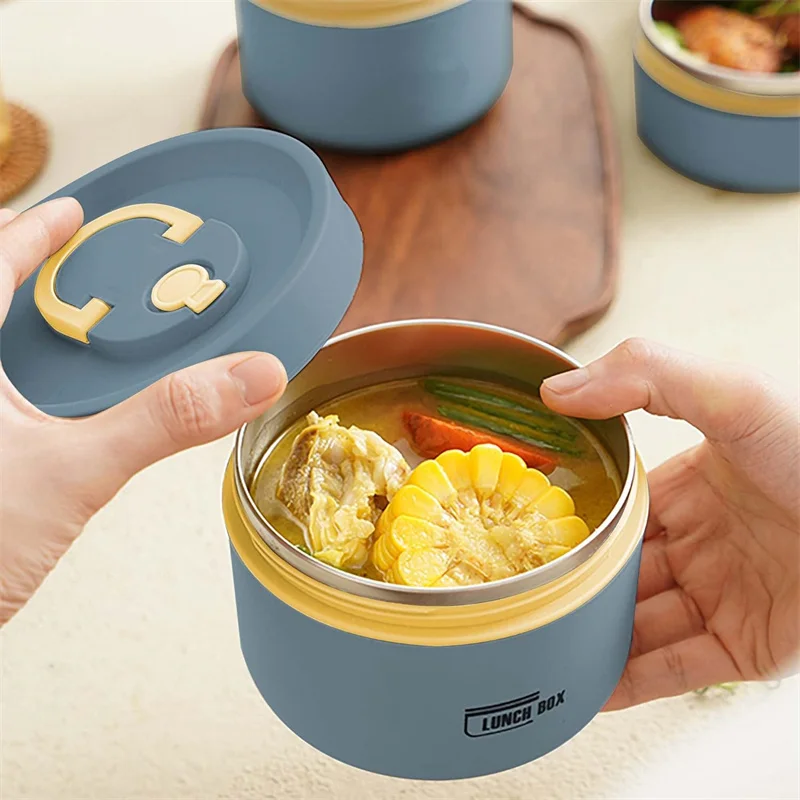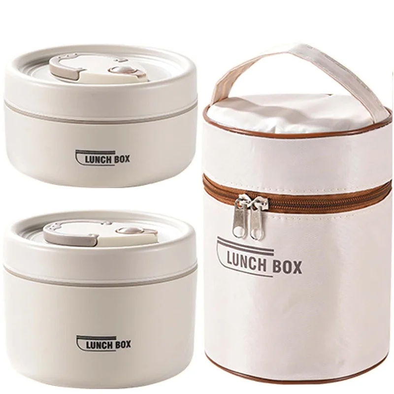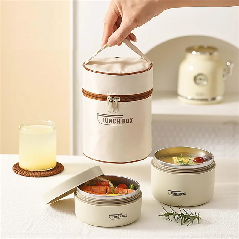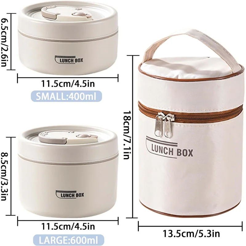 Portable Insulated Lunch Container Set for Adult, Stackable Stainless Steel Bento Lunch Box for Hot Food, Leakproof Thermal Food Container with Bag