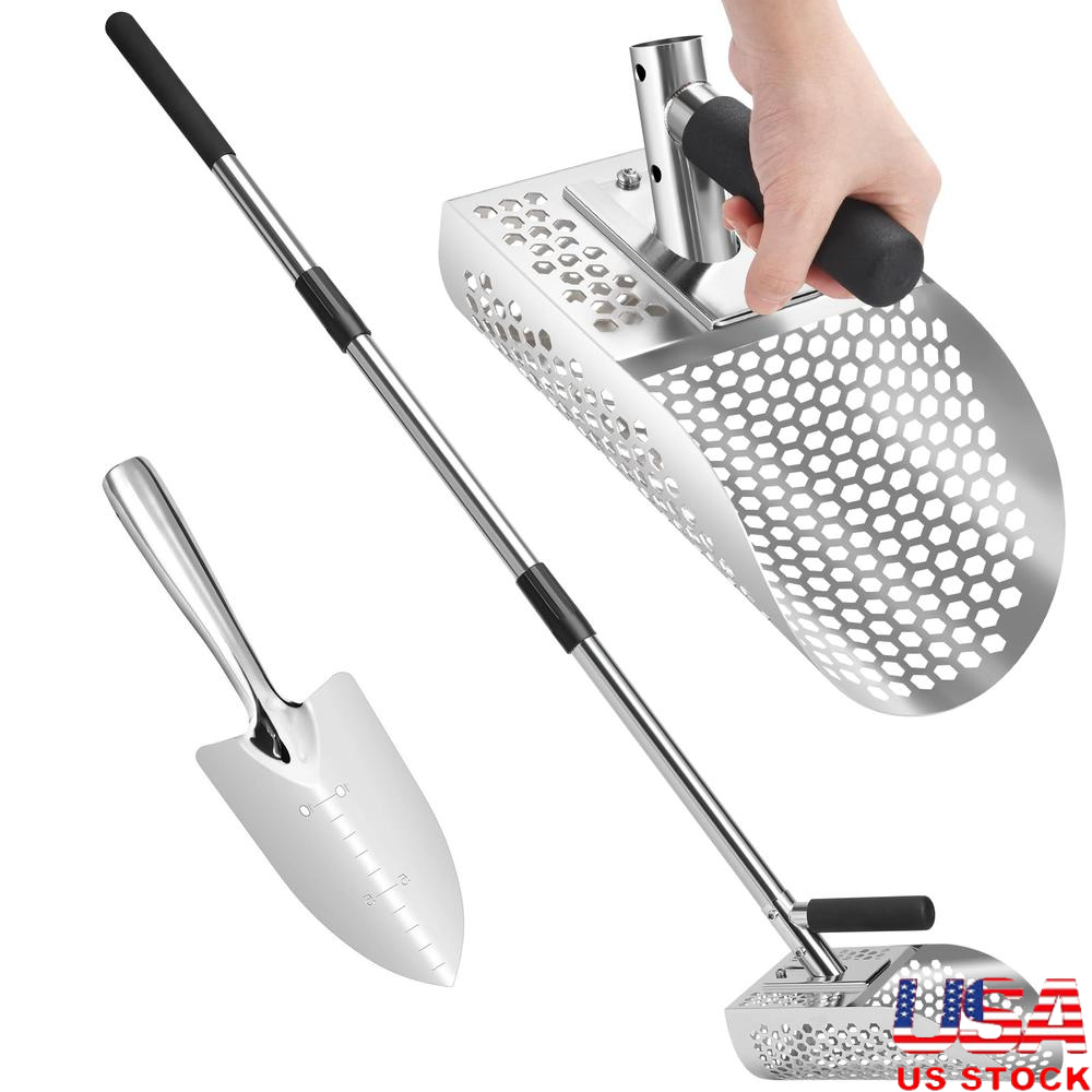 [Enhance Your Metal Detecting Experience] 2-in-1 Design: Use as a Standalone Sand Scoop or Pair with an Extension Pole. Featuring an added long-handle design that is detachable to meet different height requirements, it allows you to maintain a standing posture while working, eliminating the need to bend or squat.