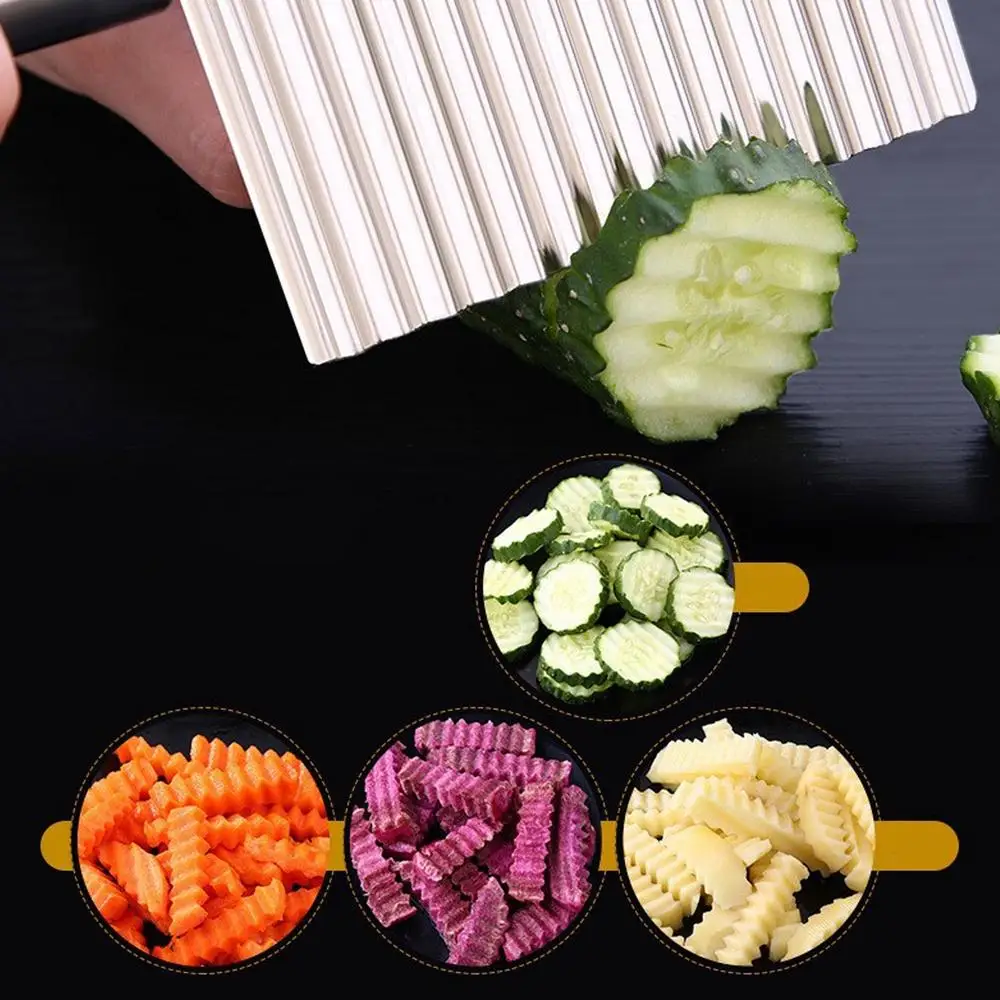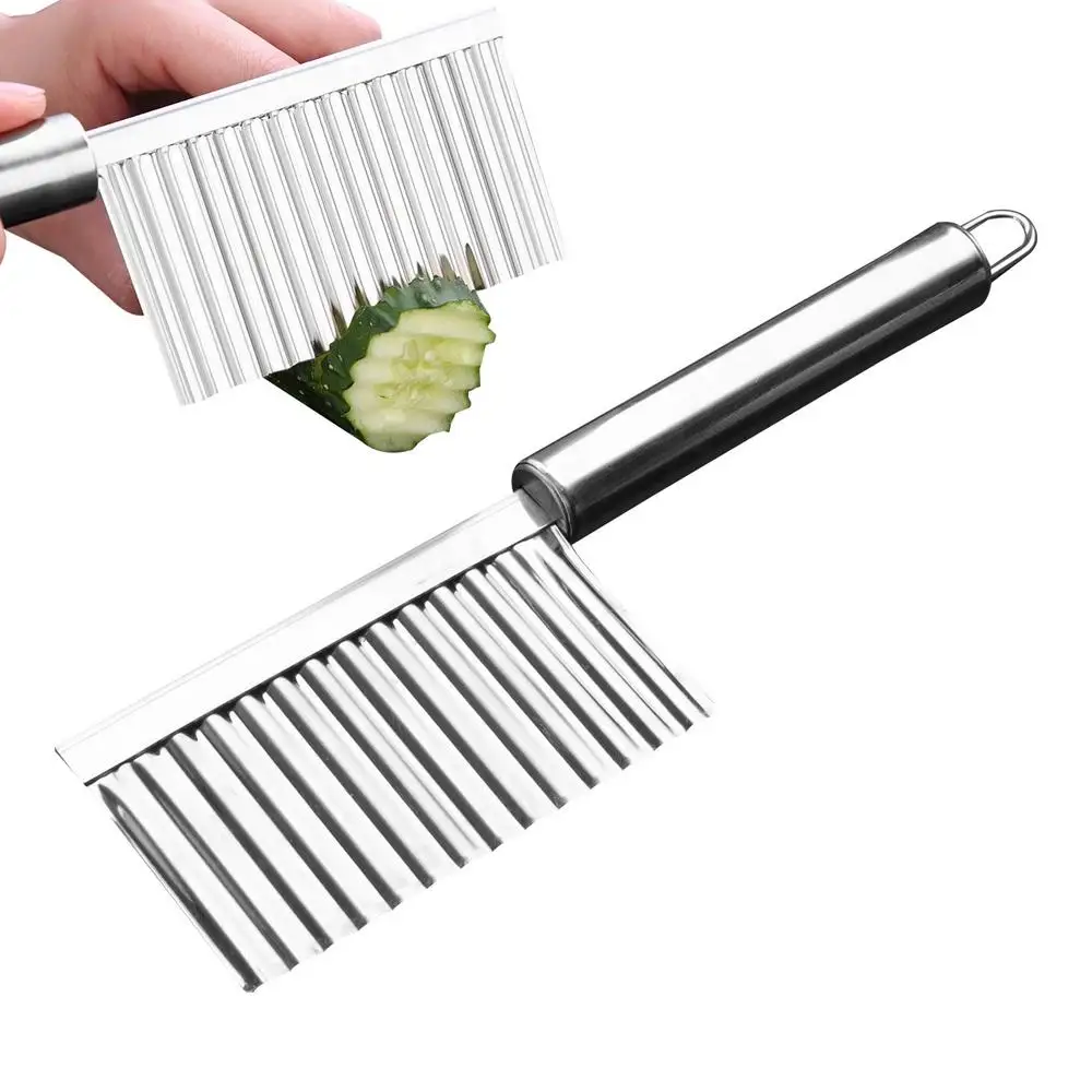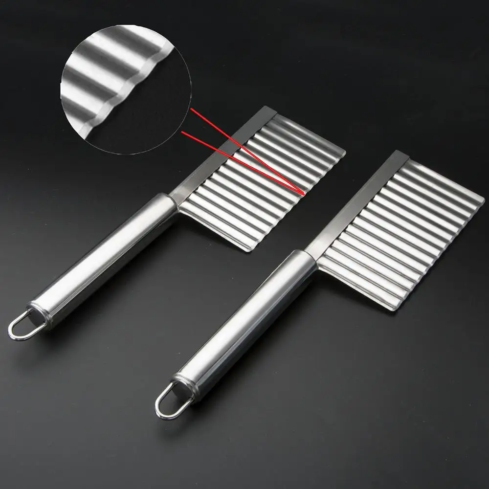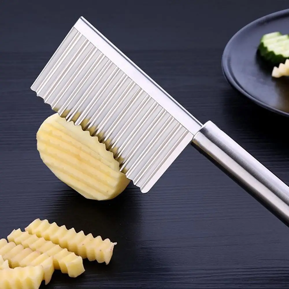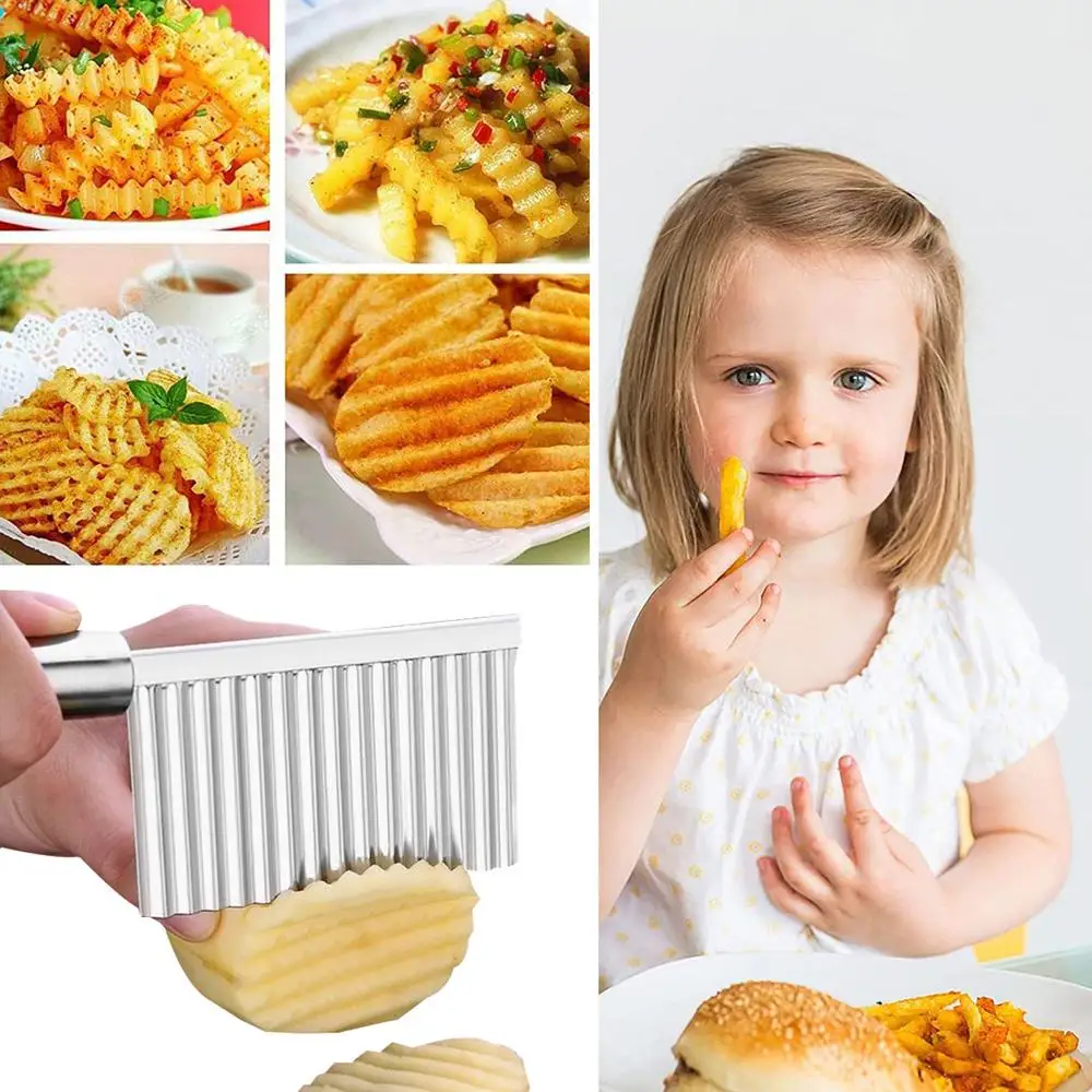 Stainless Steel Potato Chip Slicer Dough Vegetable Fruit Crinkle Wavy Kitchen Knife Cutter Chopper French Fry Maker Tools Gadget
