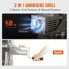 - 2 in 1 BBQ Rotisserie Grill: You can choose two ways to rotate the barbecue spit. The first is to use our handle to turn, and the other is to install the motor to rotate it automatically. Moreover, added plate and fan are used for heat insulation and dissipation.
