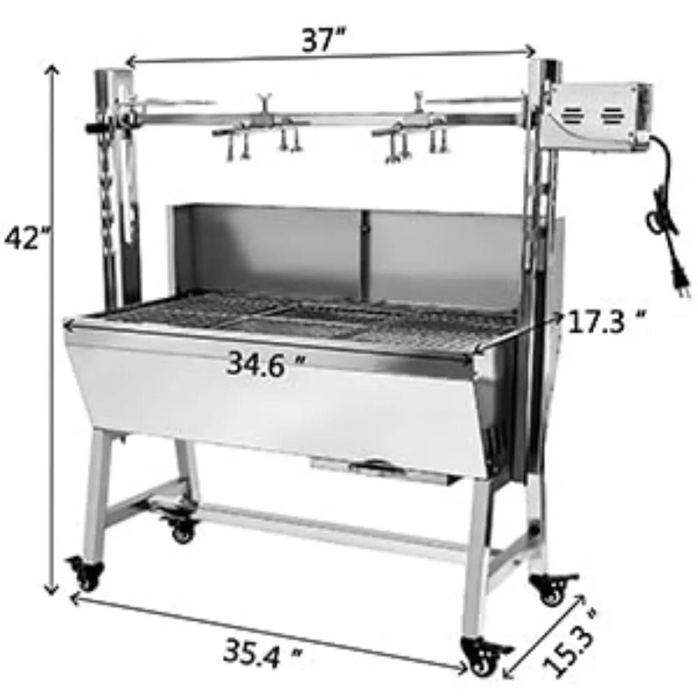 1. The total length of the rotisserie roaster grill is 37 “, and the length of the spit is 34.6”. Please select food with a length of less than 34 “for barbecue.