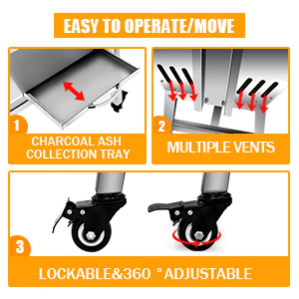 - 🐏【Easy to Move】This grill is equipped with four removable and lockable casters. 360° rotating wheels.It can move much easier and provide more steadily while cooking than the traditional grill.