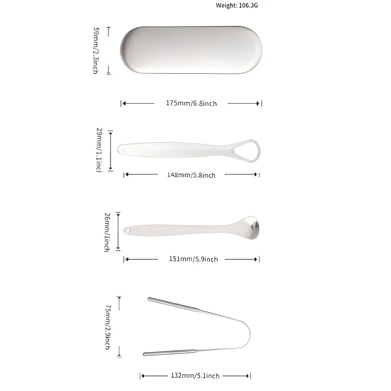 Stainless Steel Tongue Scraper Set with Portable Case Odorless, Oral Care Tool for Fresh Breath Tongue Cleaning Plate