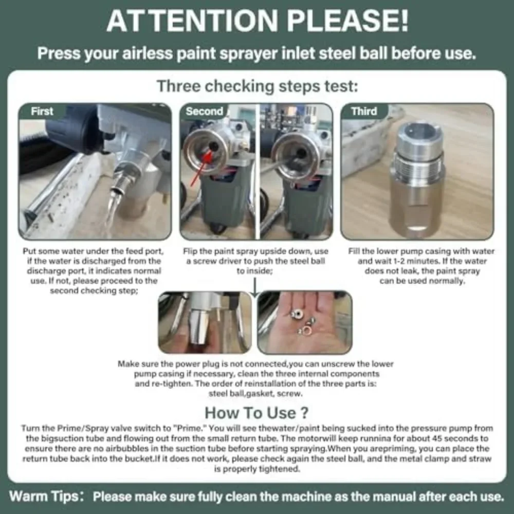 Perfect Spraying Experience: Comes with a 12-inch tip extension for easy reaching of high areas. Protect your eyes and body from atomized paint with protective clothing, masks, and goggles. The included cleaning tool kit allows for quick cleaning of the spray gun. High polymer sealing rings and dedicated wrenches tighten fittings to ensure a leak-free experience.