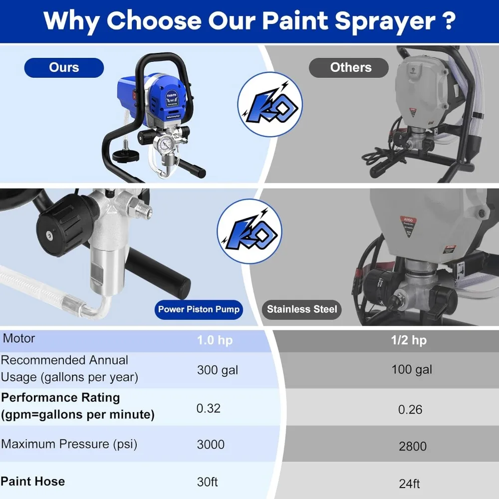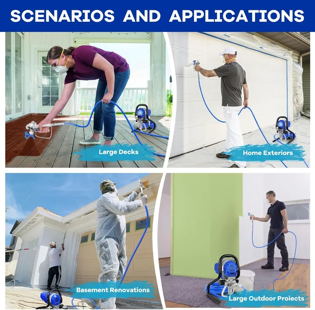 - Advanced Technology and Meticulous Design: This paint sprayer features heat-treated wear-resistant piston pumps and double-layer insulated power motors. It can spray up to 300 gallons of paint per year, with a longer lifespan and a spraying efficiency of 0.32GMP compared to traditional small stainless steel pumps. It supports paint hoses up to 75 feet long, making it suitable for indoor and outdoor painting tasks such as walls, furniture, fences, cabinets, sheds, and yards.