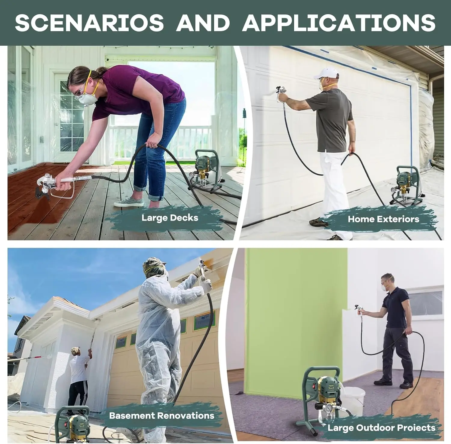 - Advanced Technology and Meticulous Design: This paint sprayer features heat-treated wear-resistant piston pumps and double-layer insulated power motors. It can spray up to 300 gallons of paint per year, with a longer lifespan and a spraying efficiency of 0.32GMP compared to traditional small stainless steel pumps. It supports paint hoses up to 75 feet long, making it suitable for indoor and outdoor painting tasks such as walls, furniture, fences, cabinets, sheds, and yards.