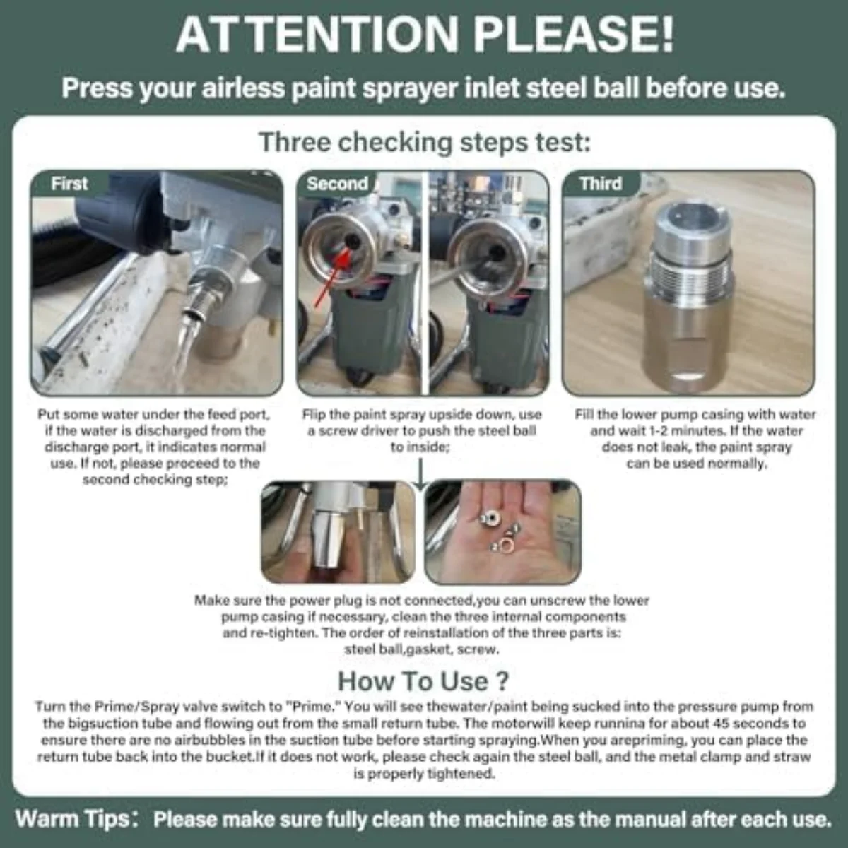 - Advanced Technology and Meticulous Design: This paint sprayer features heat-treated wear-resistant piston pumps and double-layer insulated power motors. It can spray up to 300 gallons of paint per year, with a longer lifespan and a spraying efficiency of 0.32GMP compared to traditional small stainless steel pumps. It supports paint hoses up to 75 feet long, making it suitable for indoor and outdoor painting tasks such as walls, furniture, fences, cabinets, sheds, and yards.