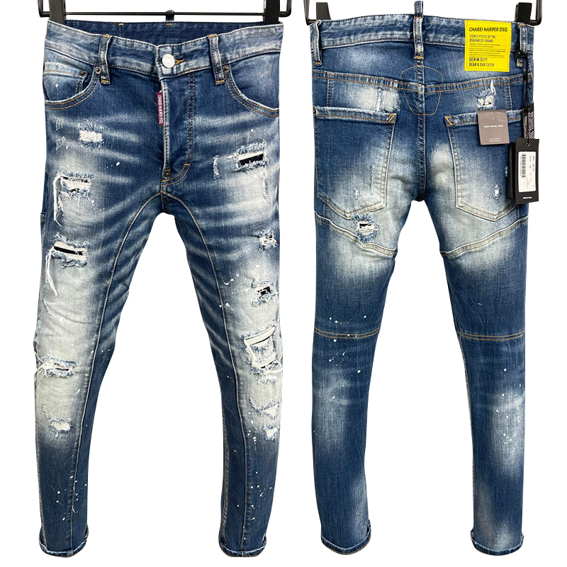 starbags dsq A610 stitched men’s denim trousers embroidered Italian windbrushed white small straight leg jeans