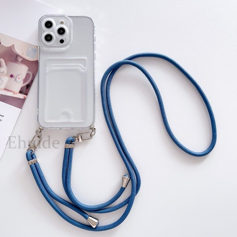 Strap Transparent Case For Samsung Galaxy S24 FE S25 Ultra A36 A06 A16 A55 A35 A15 A54 Crossbody Lanyard Cord Wallet Card Cover