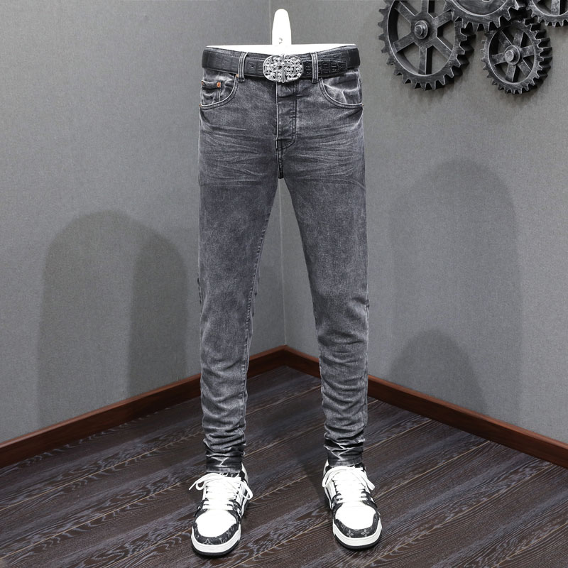 Street Fashion Men Jeans Retro Black Gray Stretch Skinny Fit Brand Jeans Men Vintage Designer Spliced Hip Hop Denim Pencil Pants