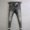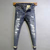 Street Fashion Men Jeans Retro BlueStretch Skinny Fit Ripped Jeans Men Vintage Designer Patched Denim Pencil Pants Hombre