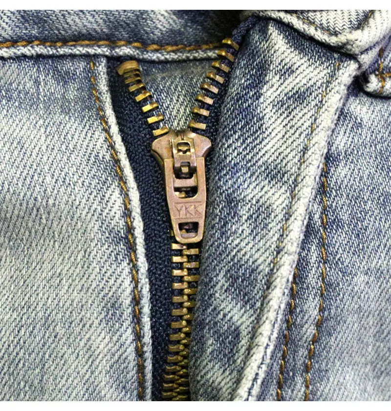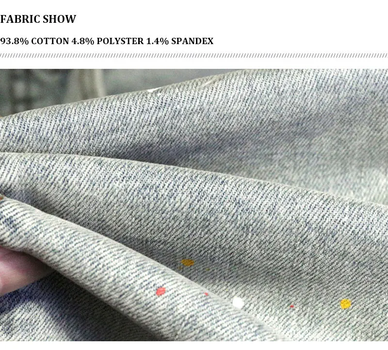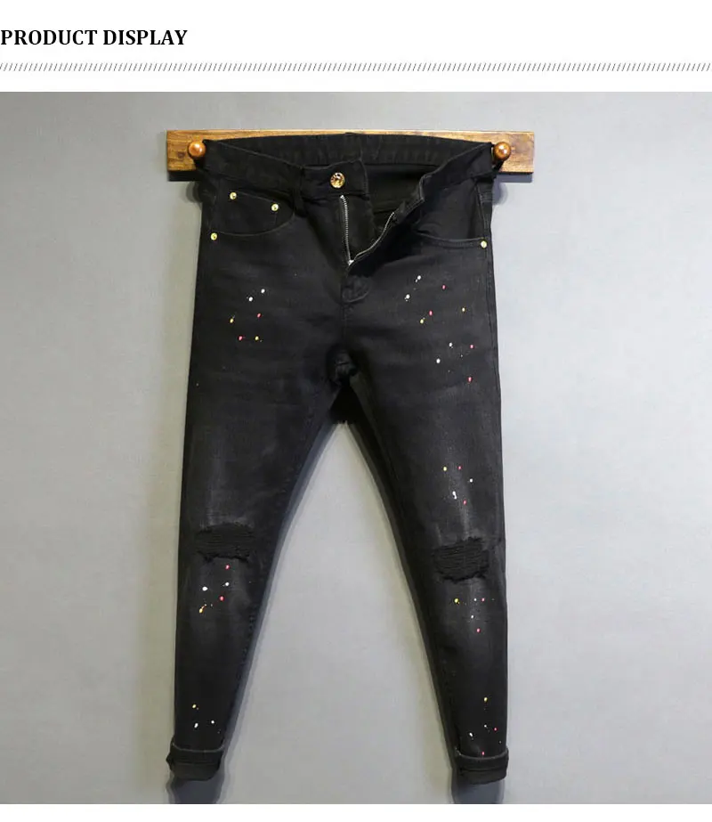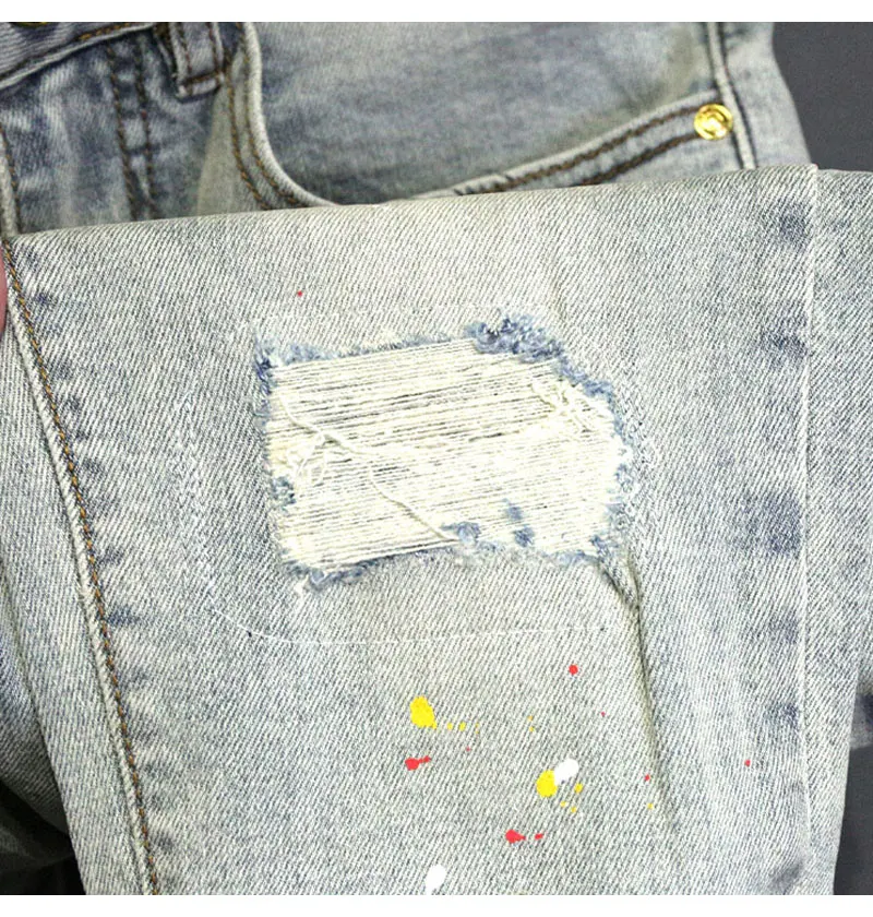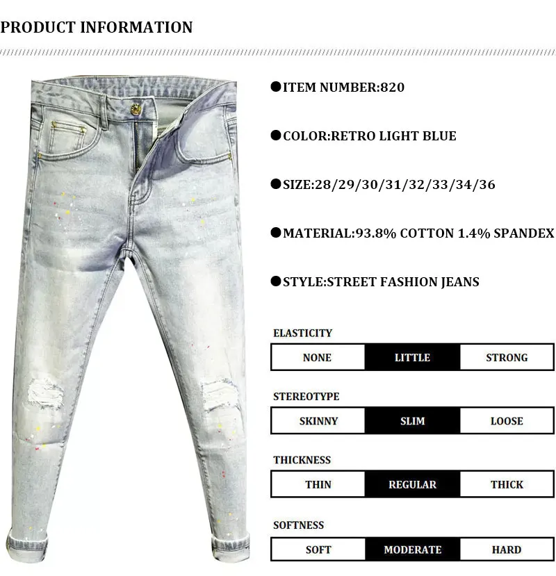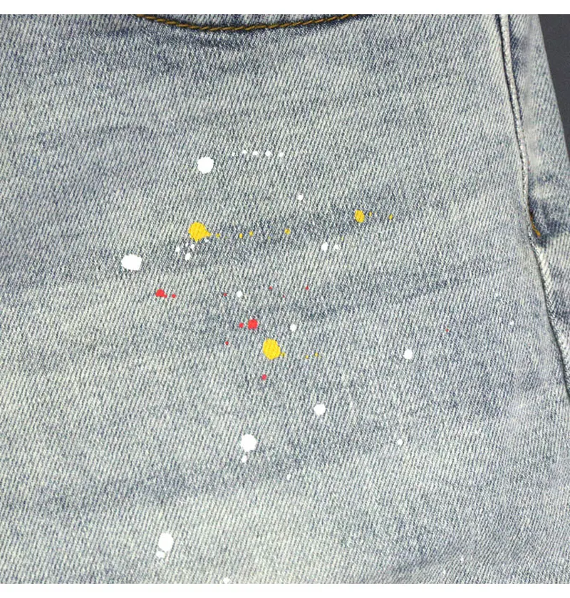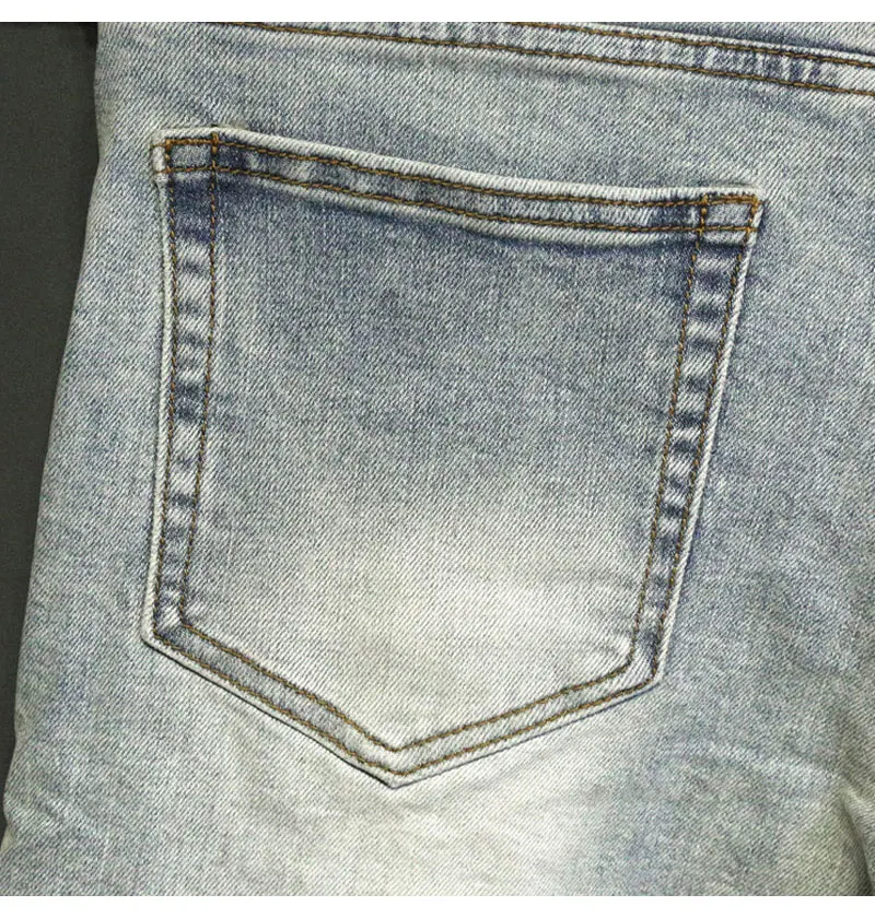Street fashion men’s jeans elastic tight corrugated jeans men’s painted designer hip-hop retro casual light blue denim pants