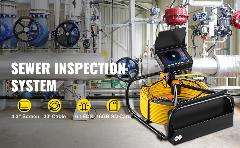 32.8ft (10m) Durable Cable: The inspection camera is paired with a tough 32.8ft (10m) cable, providing ample length to reach hard-to-access areas. Whether it’s long sewer pipes or narrow ducts, the flexible cable ensures full coverage during inspections.