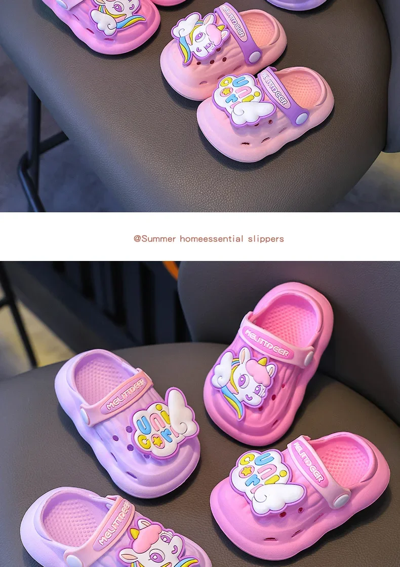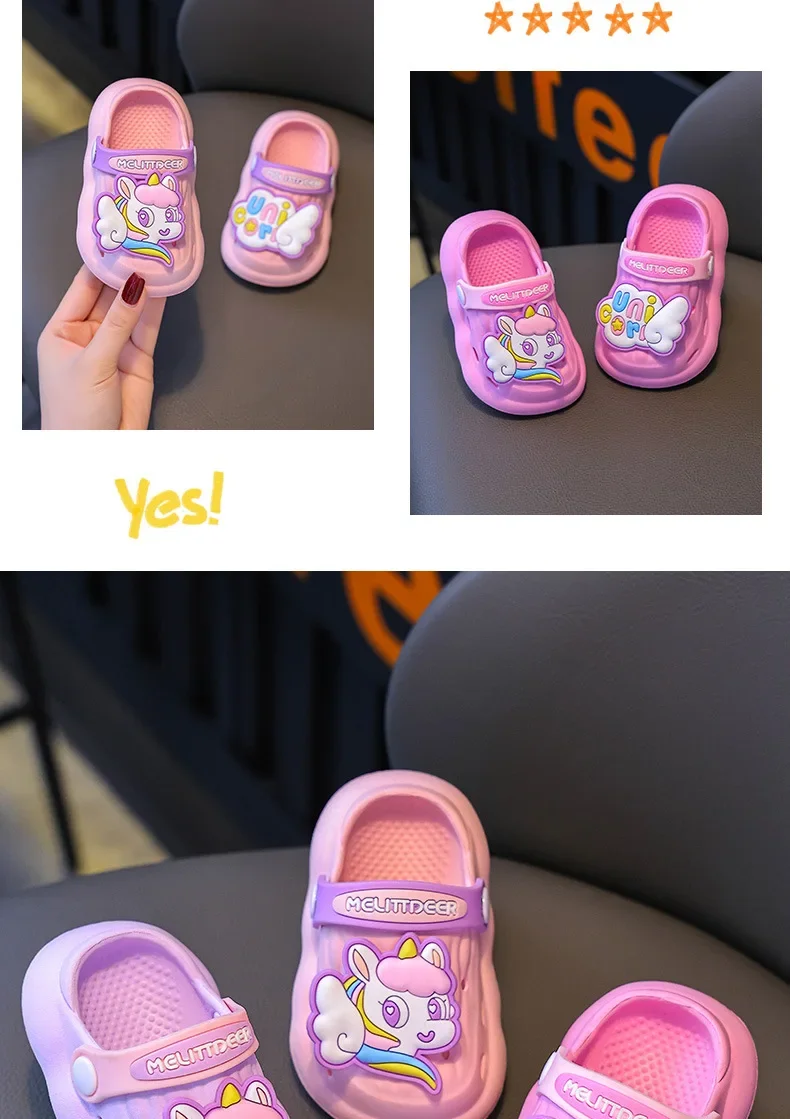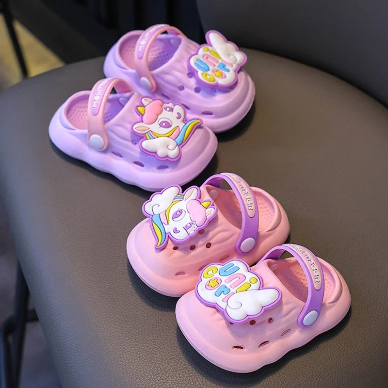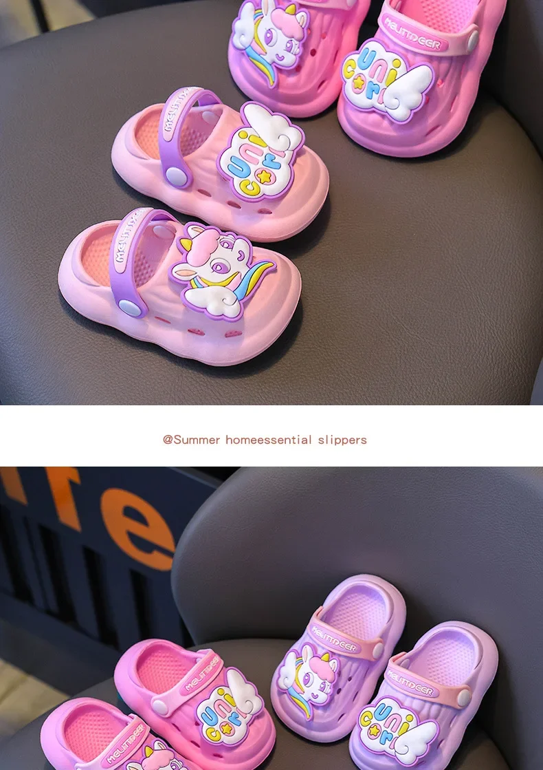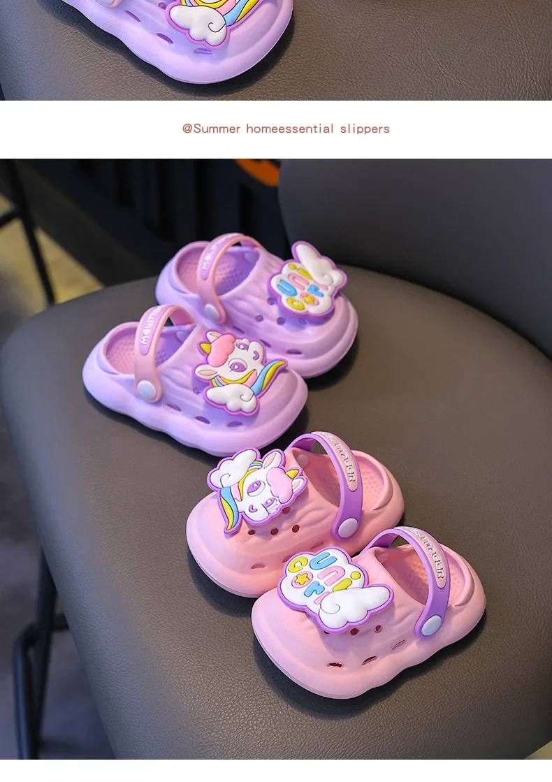 Summer Aged 0-4 Children Slippers Cute Cartoon Pony Baby Sandals For Girls Flip Flops Non-Slip Toddler Home Kids Garden Shoes