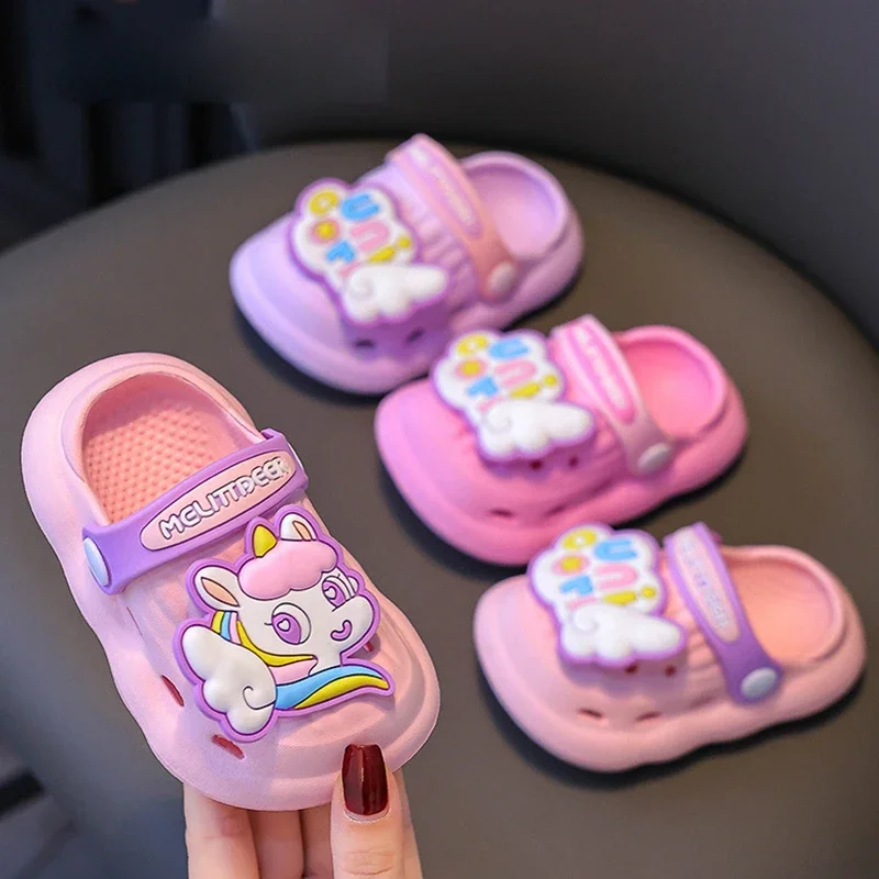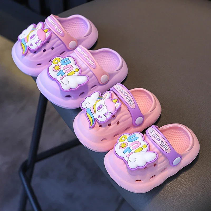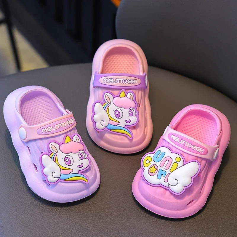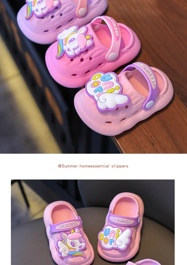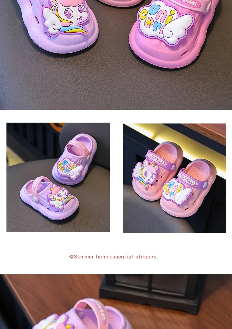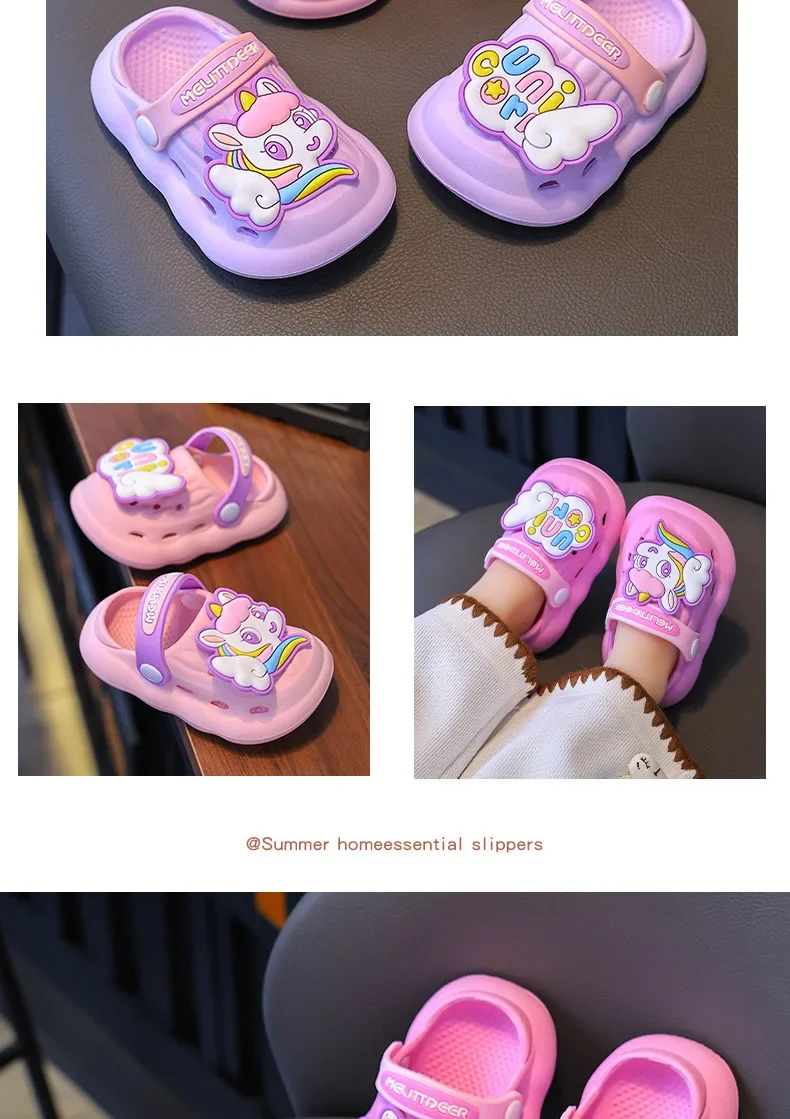 Summer Aged 0-4 Children Slippers Cute Cartoon Pony Baby Sandals For Girls Flip Flops Non-Slip Toddler Home Kids Garden Shoes
