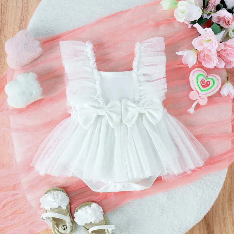 Summer Baby Girl Dress Sweet Infant Princess Tulle Dresses Cotton Mesh Newborn Bodysuit Toddlers Clothing Girls Romper D2L