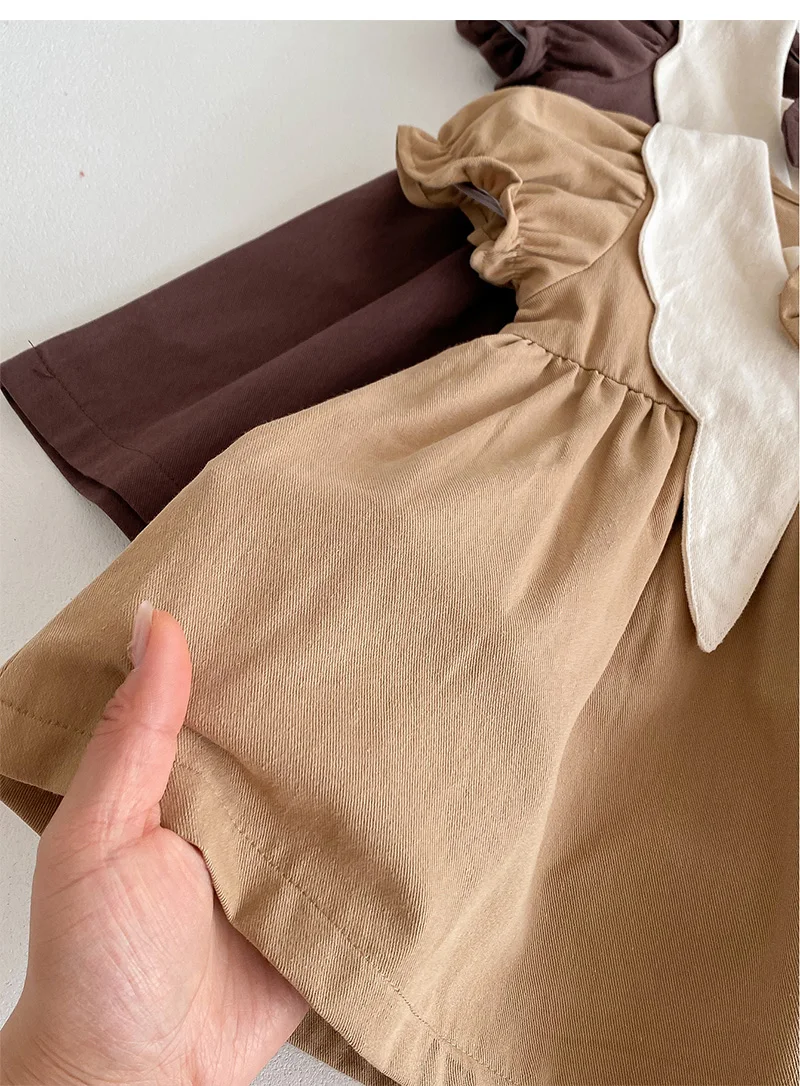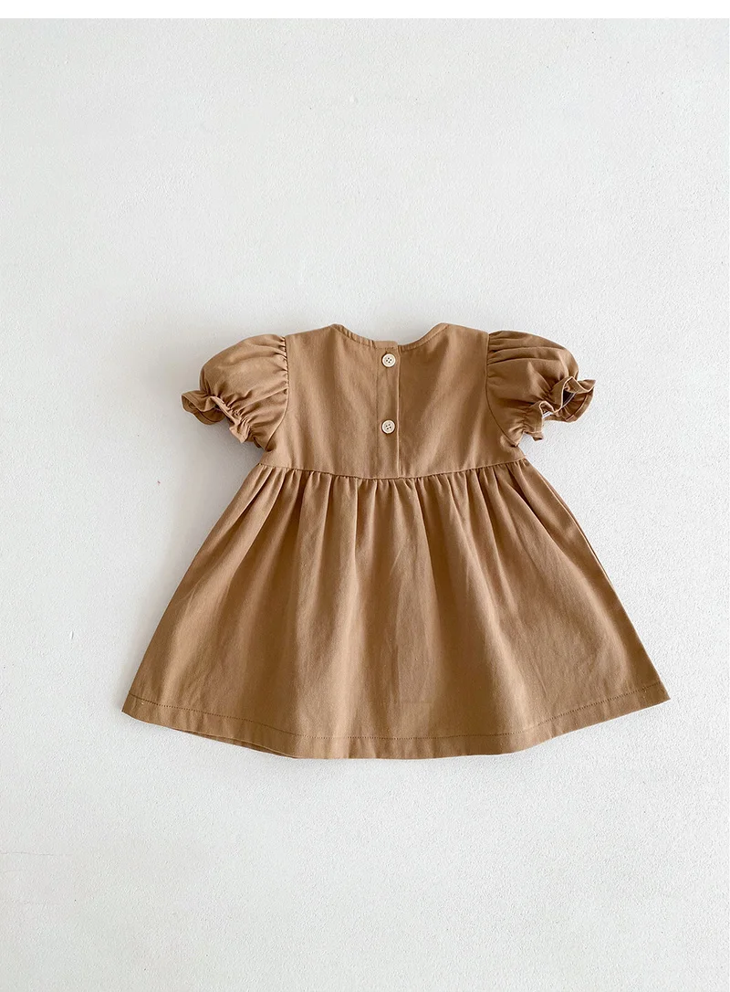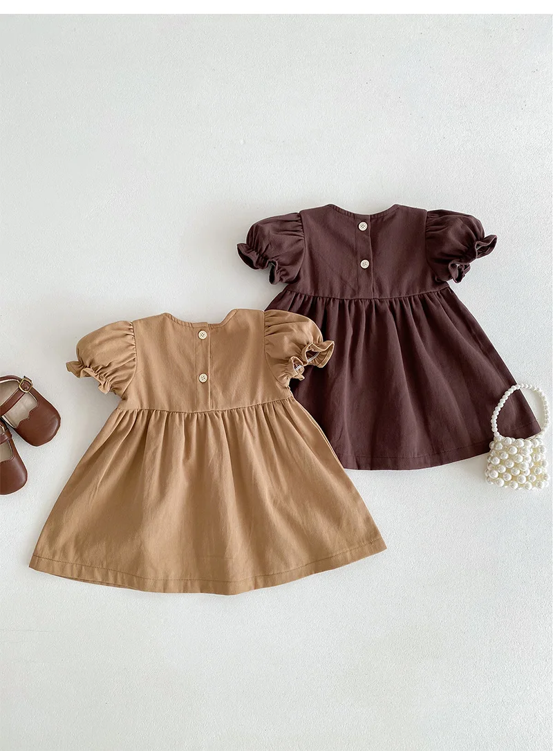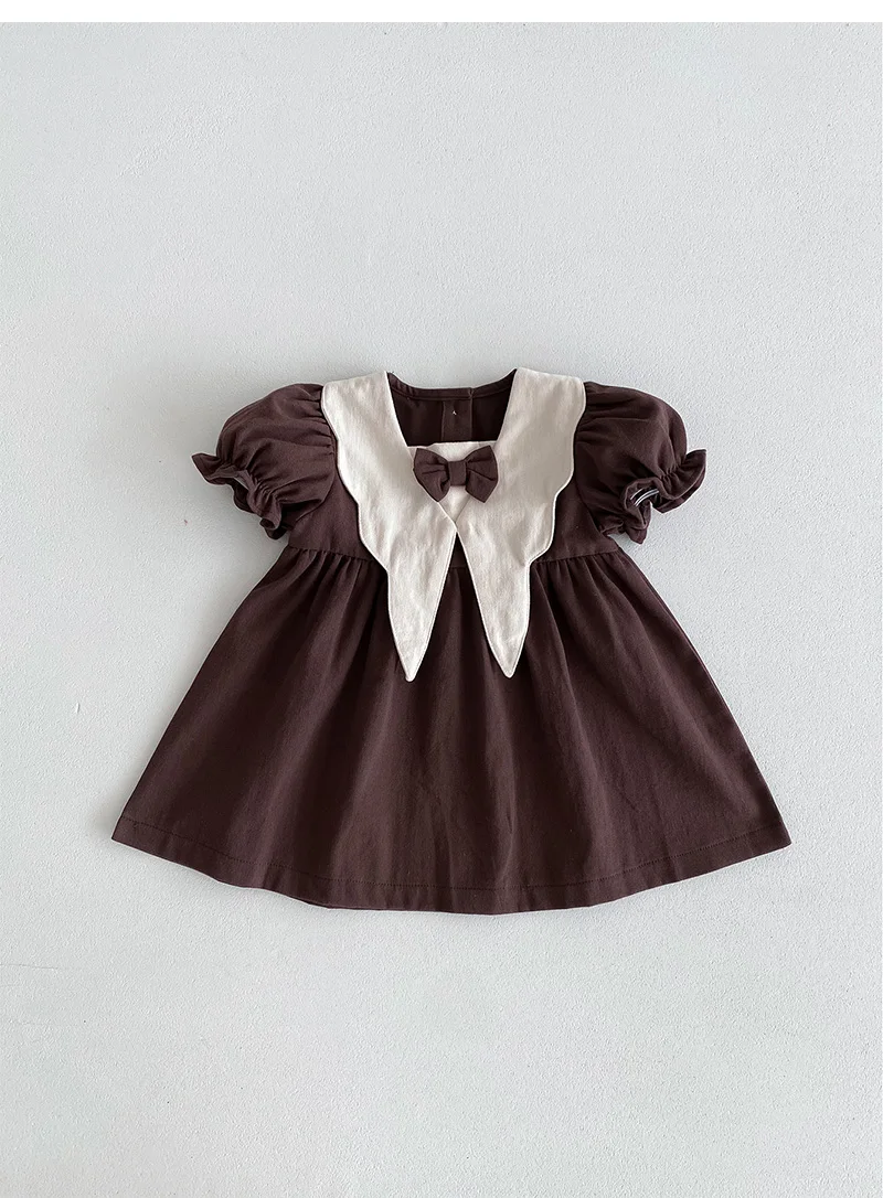 Summer Baby Girls Dress Preppy Style Kids Clothes Retro Princess Dresses Korean Puff Sleeve Skirt Toddler Infant Outfit