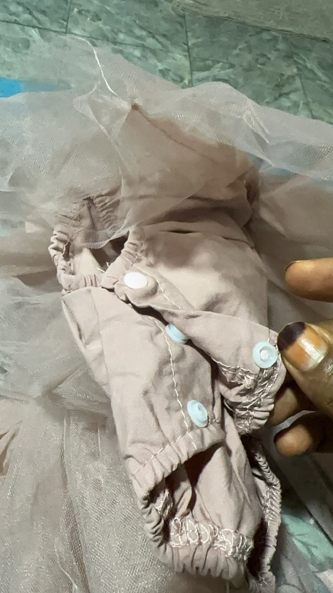 Pretty dress. Lining is cheap but comfortable on skin. Plastic snaps but they look firm. Overall, I’m pleased with the dress. It will be great for my baby’s photoshoot.